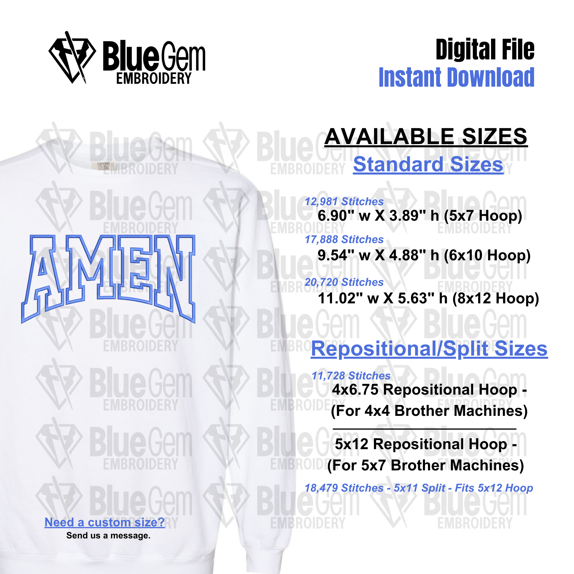 Amen Applique Embroidery Design: Arched Font, 5 Sizes (Digital Download)