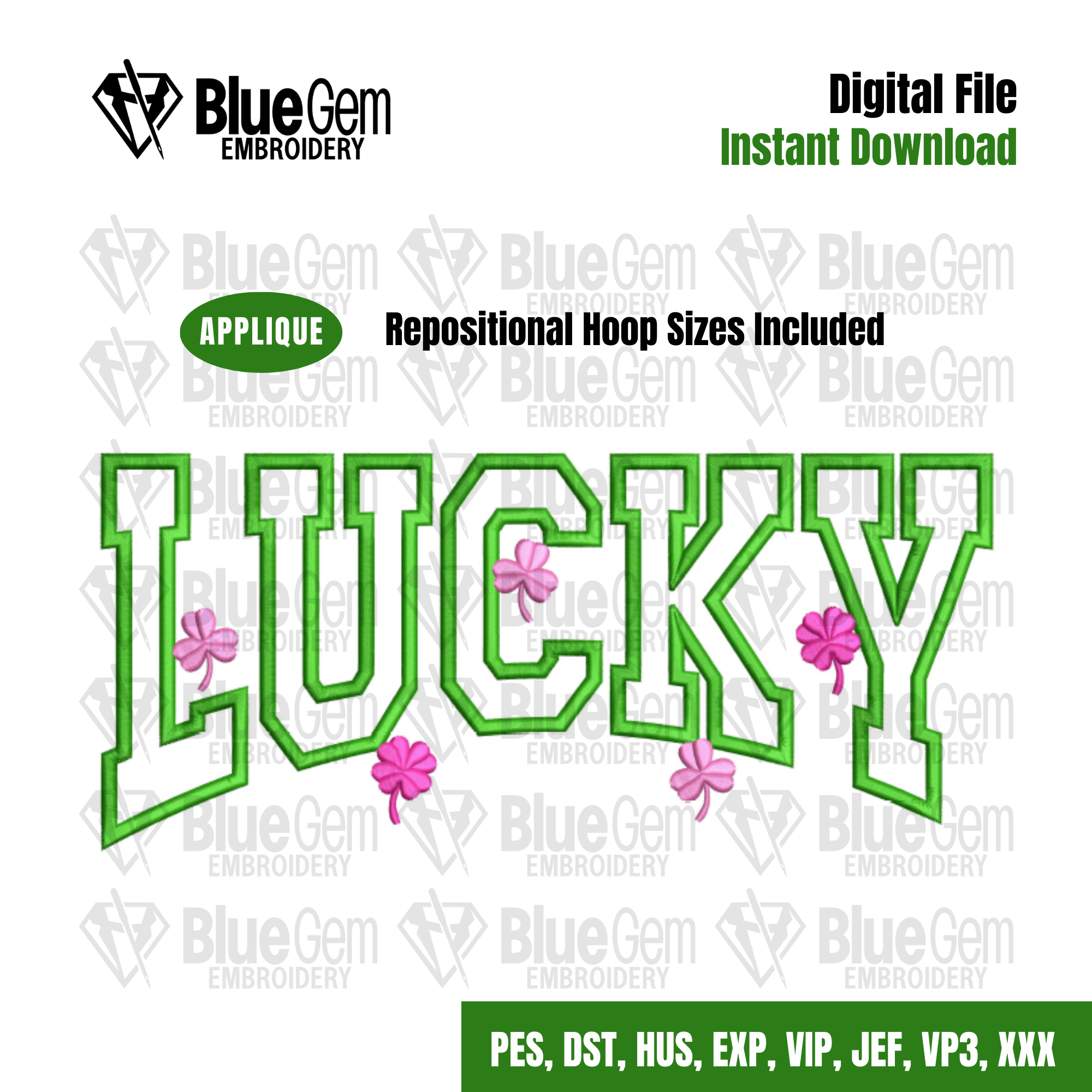 Lucky Applique Embroidery Design: Shamrocks and Clovers