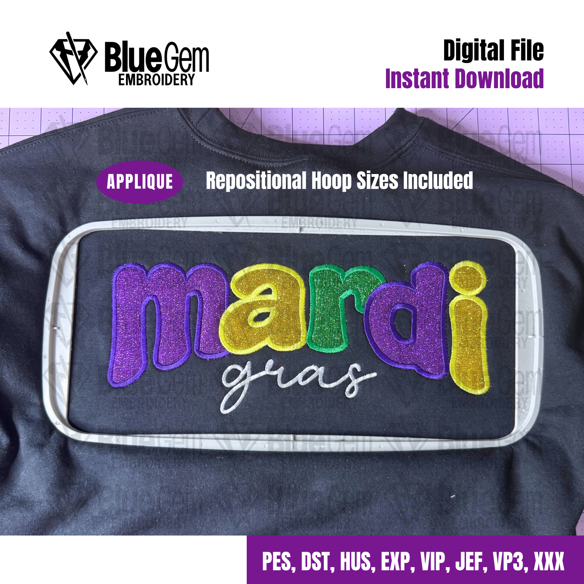 Mardi Gras Applique Embroidery Design - Groovy