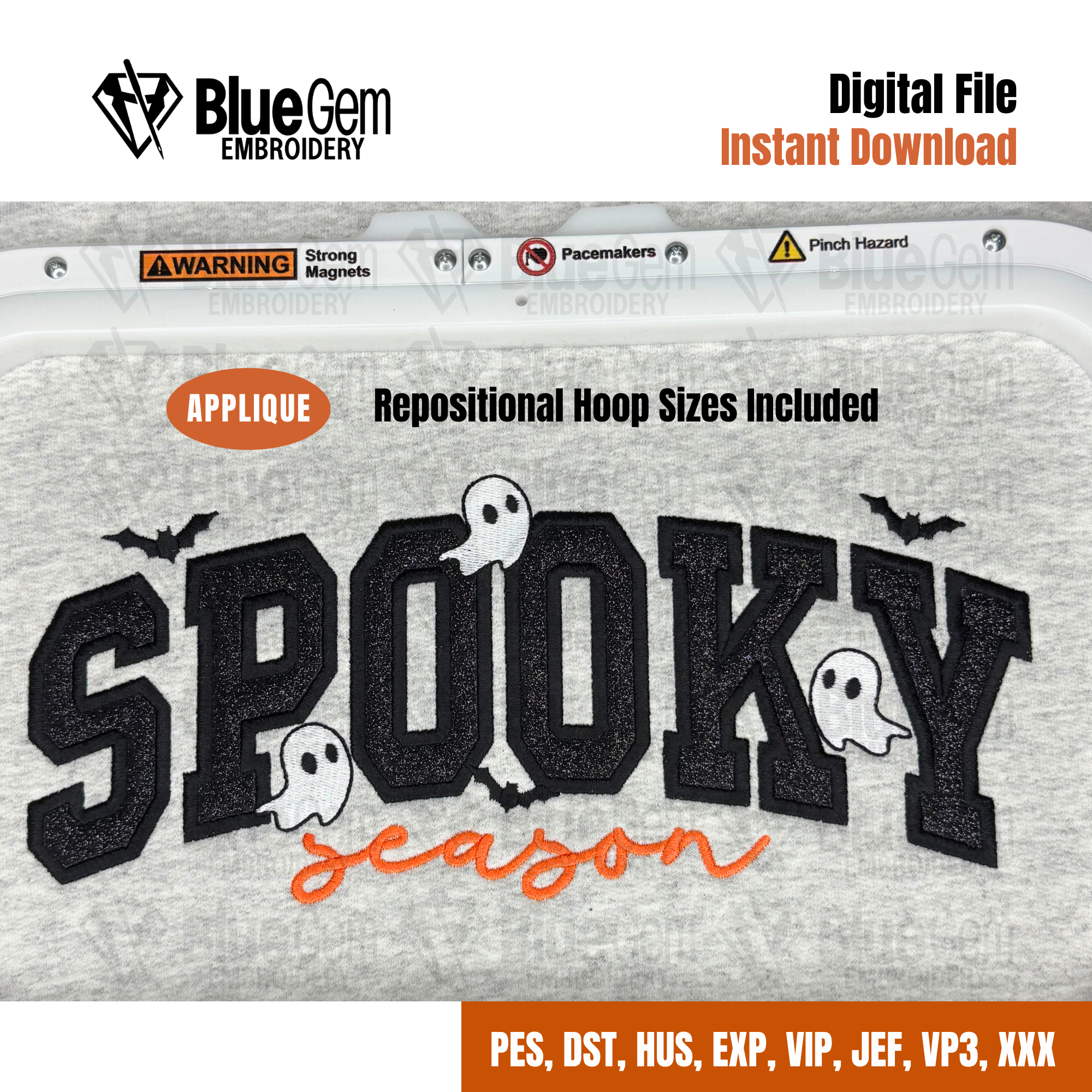Spooky Season Applique Embroidery Design with Bats and Ghosts