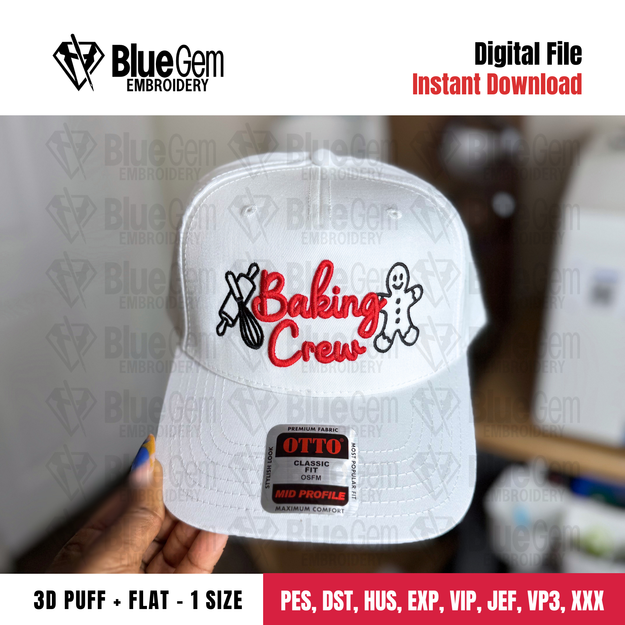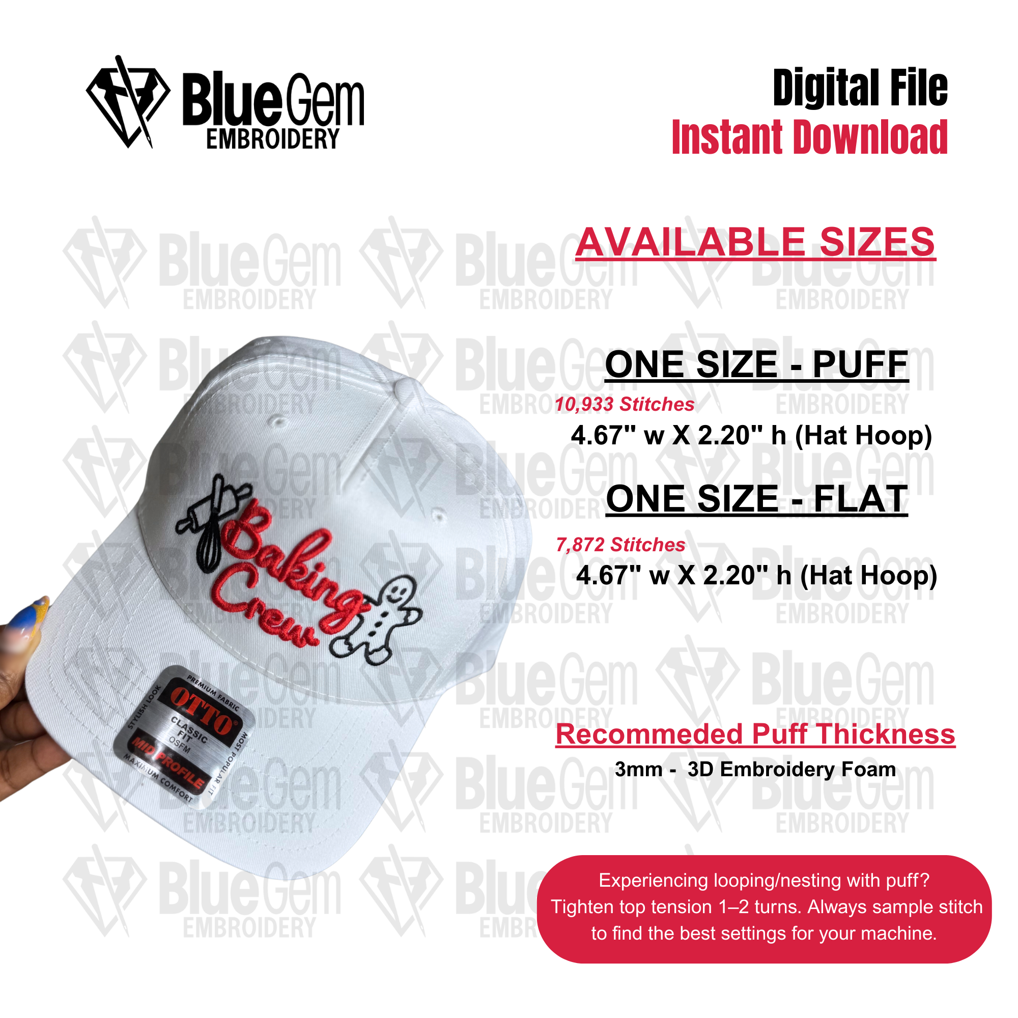 Baking Crew Hat Embroidery Design - 3D Puff & Flat