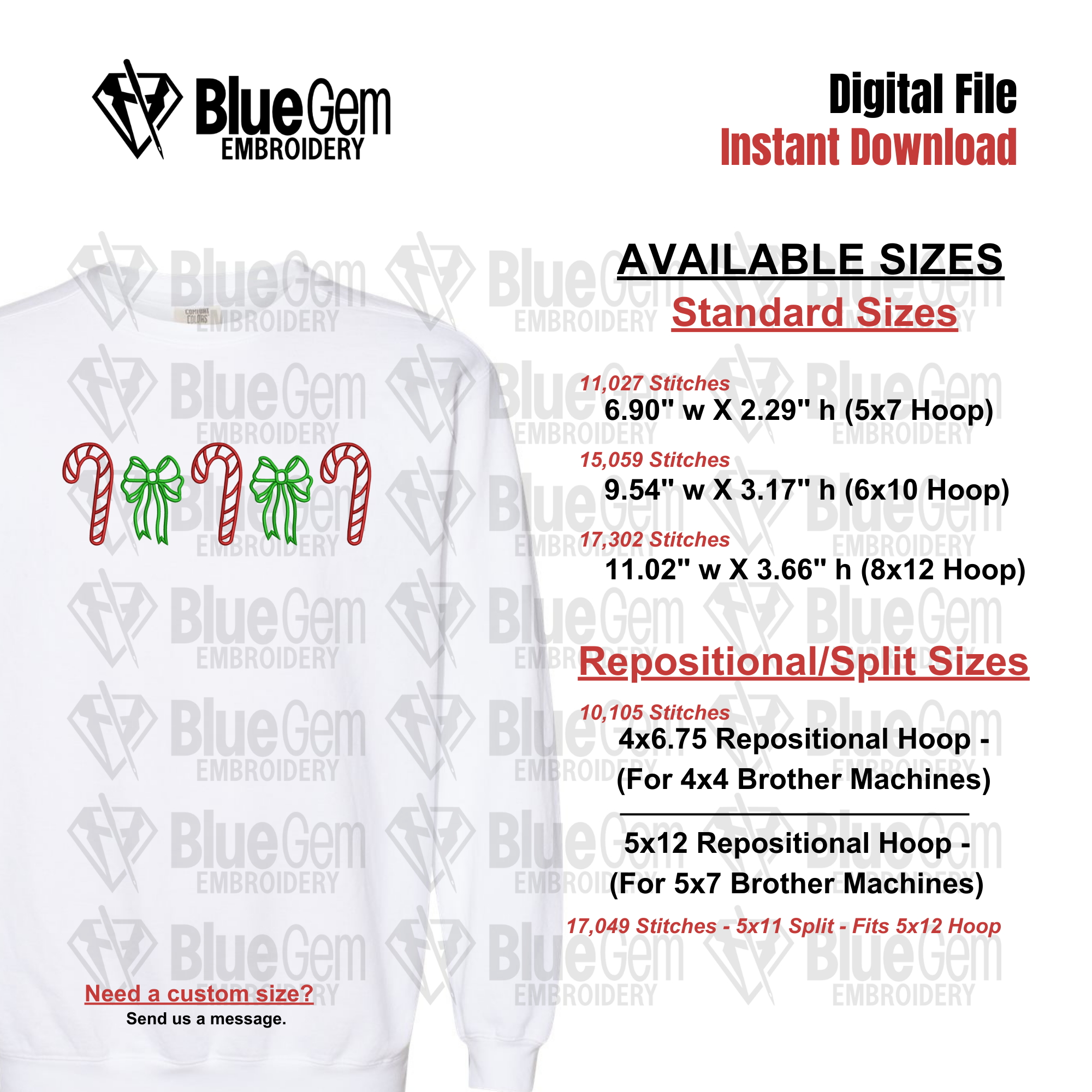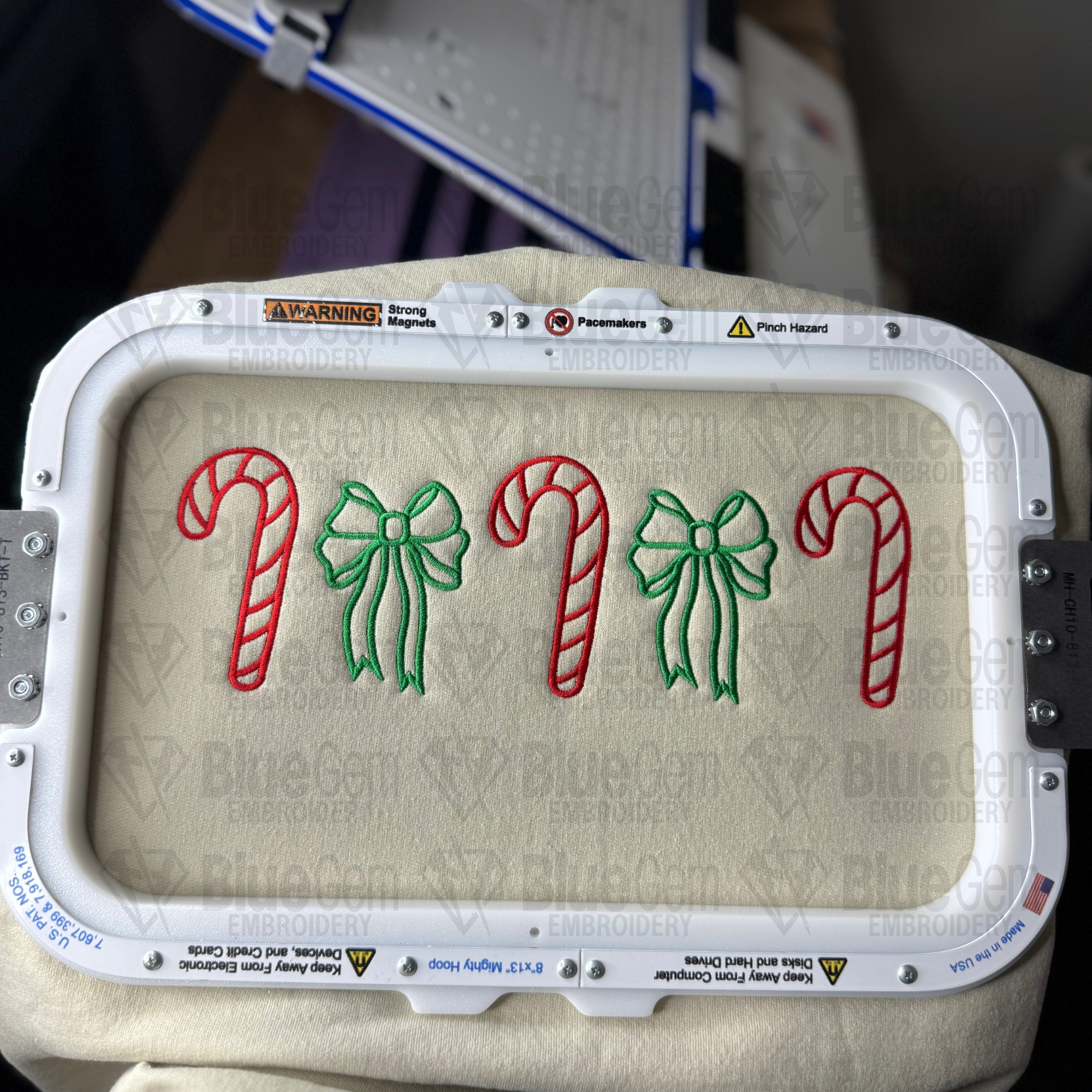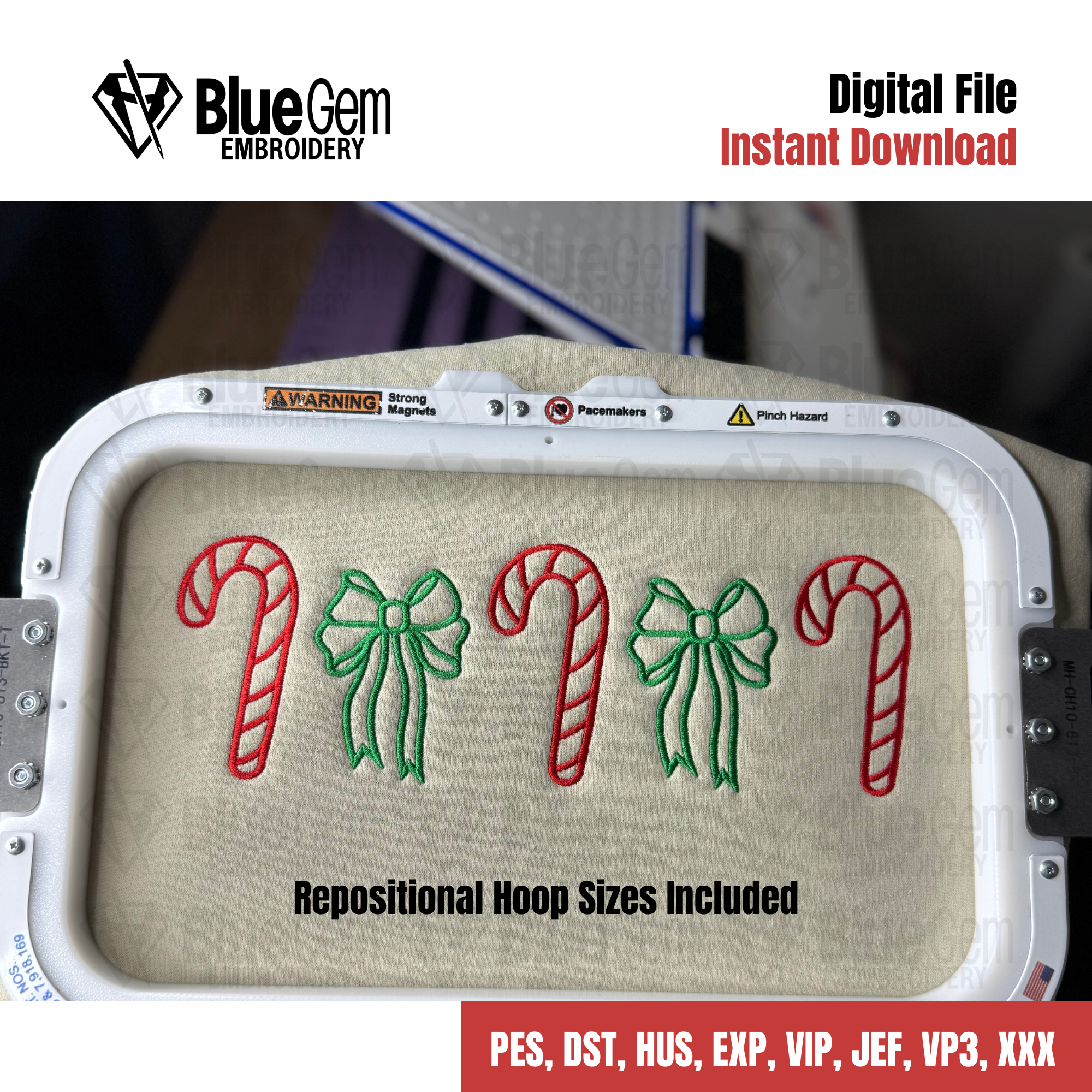 Candy Cane Embroidery Design: Candy Cane Bow Icons