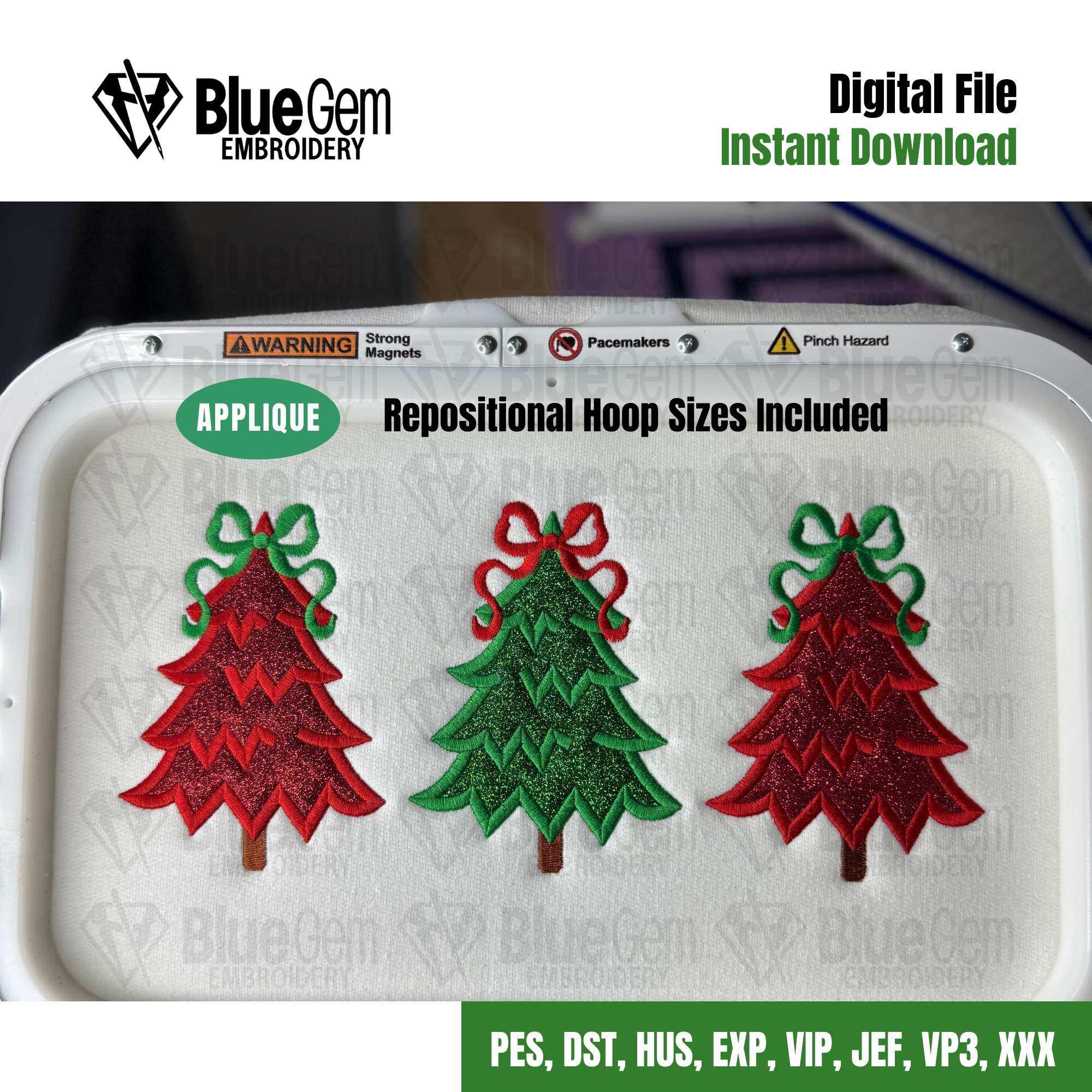 Christmas Trees Applique Embroidery Design: Satin Stitch