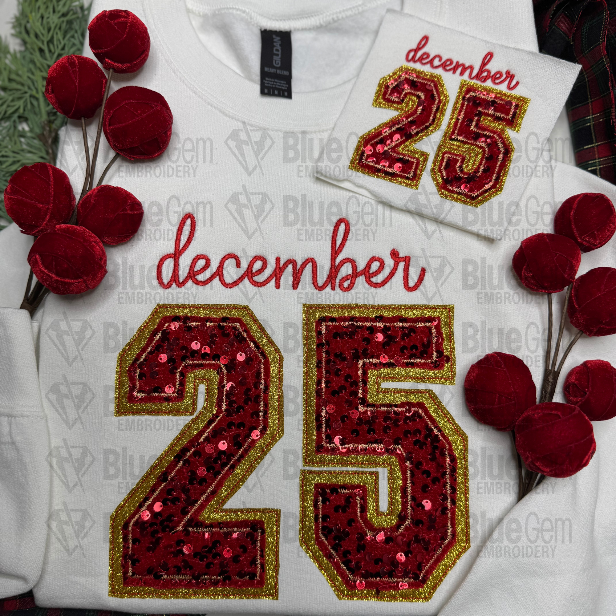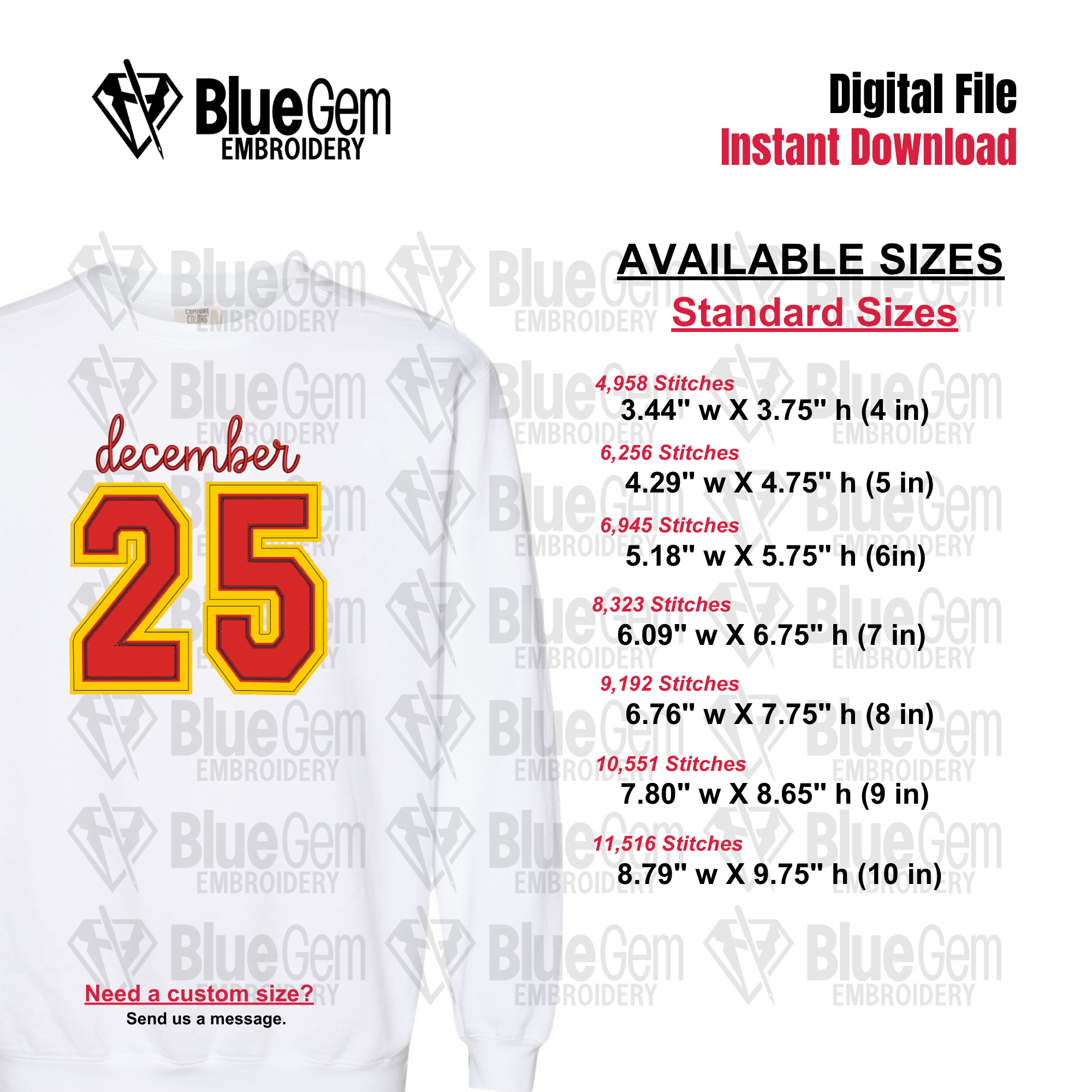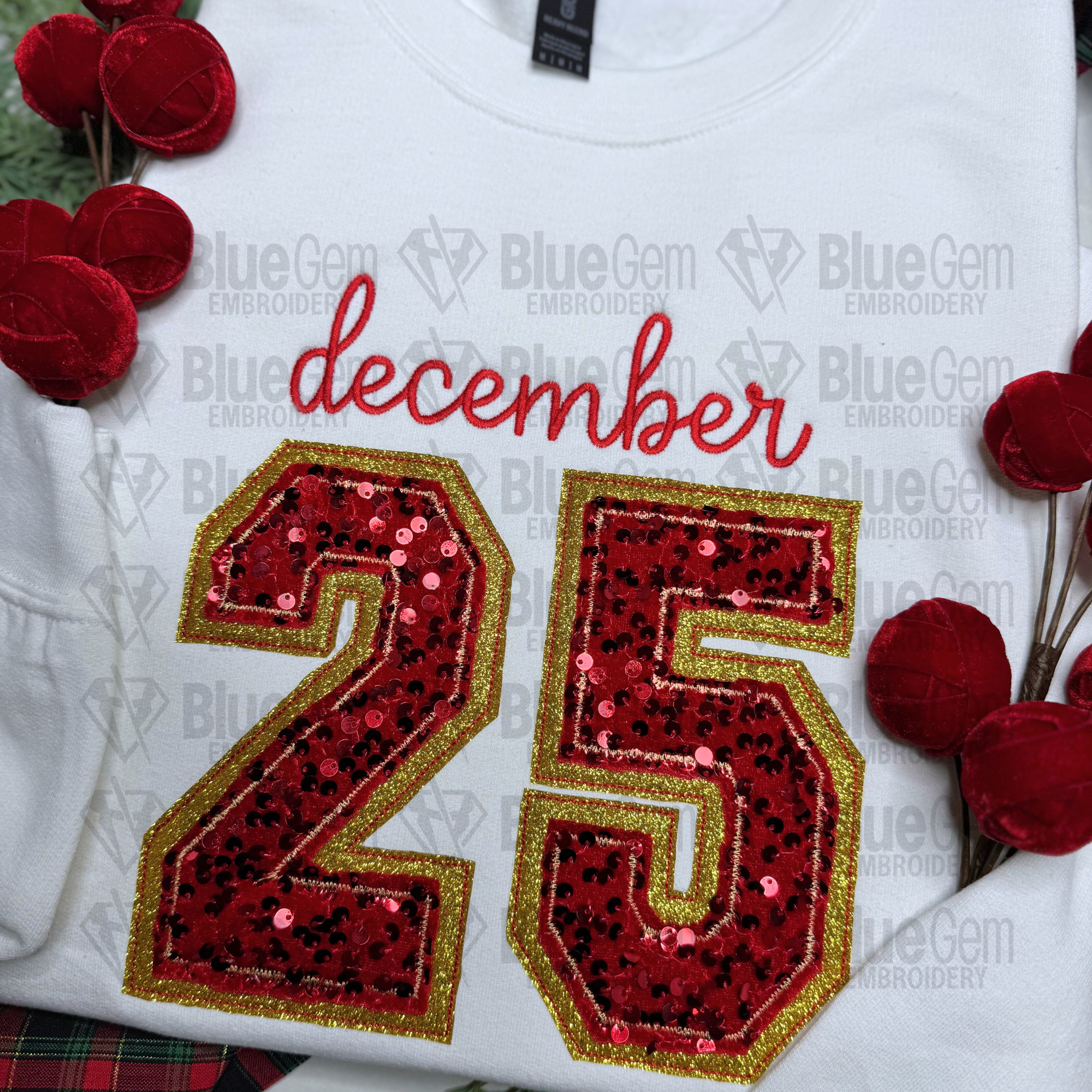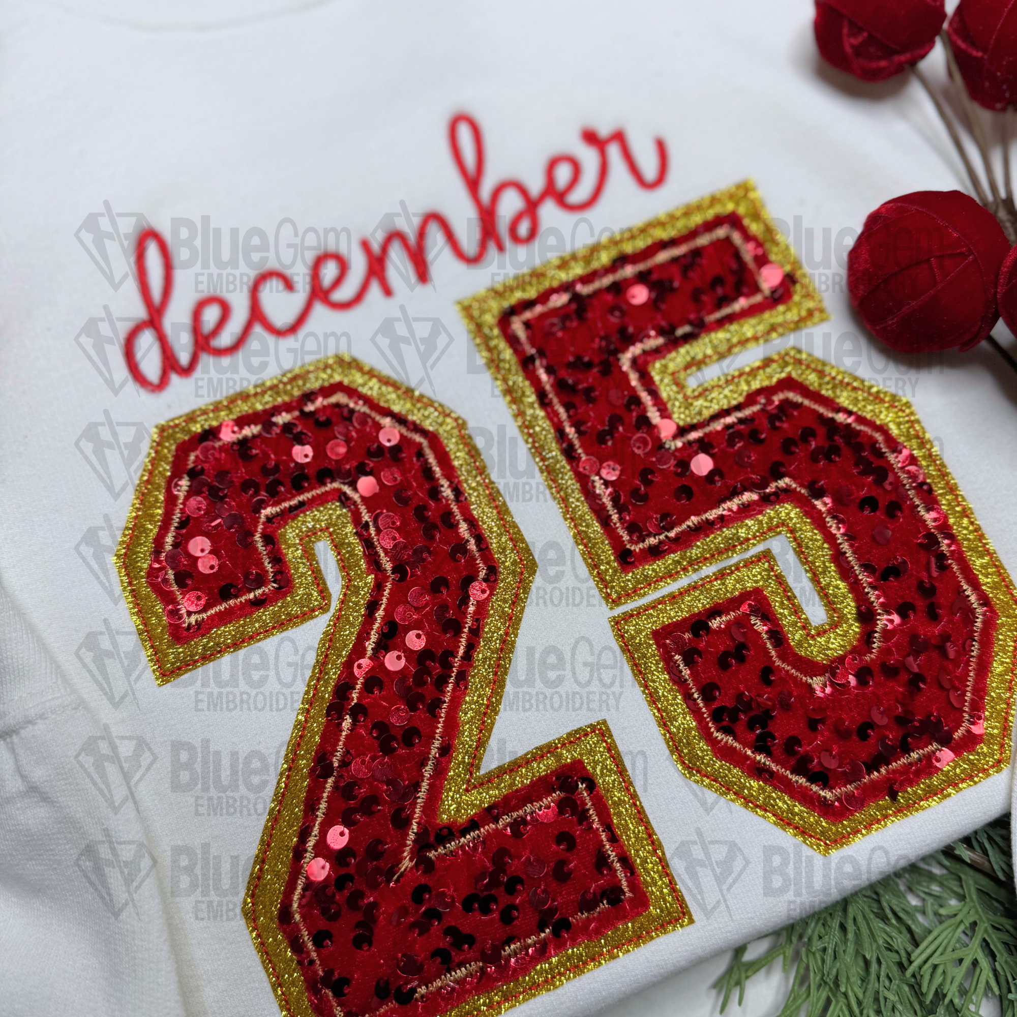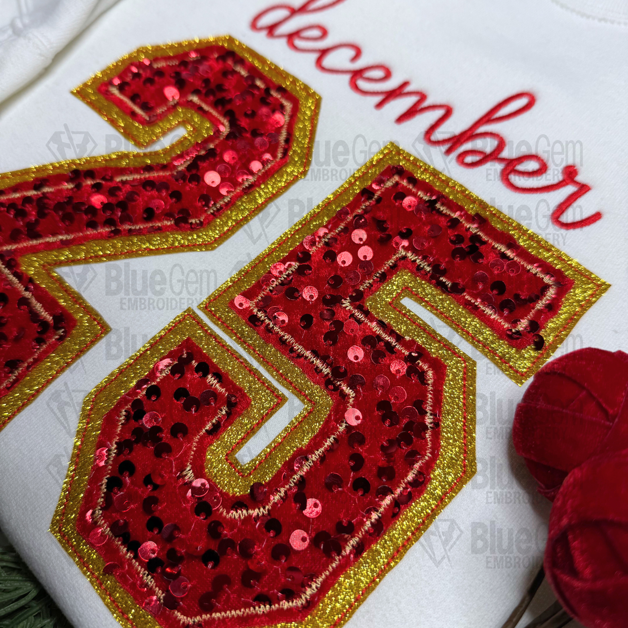 December 25 Applique Embroidery Design: Christmas Sequins Design (Instant Download)