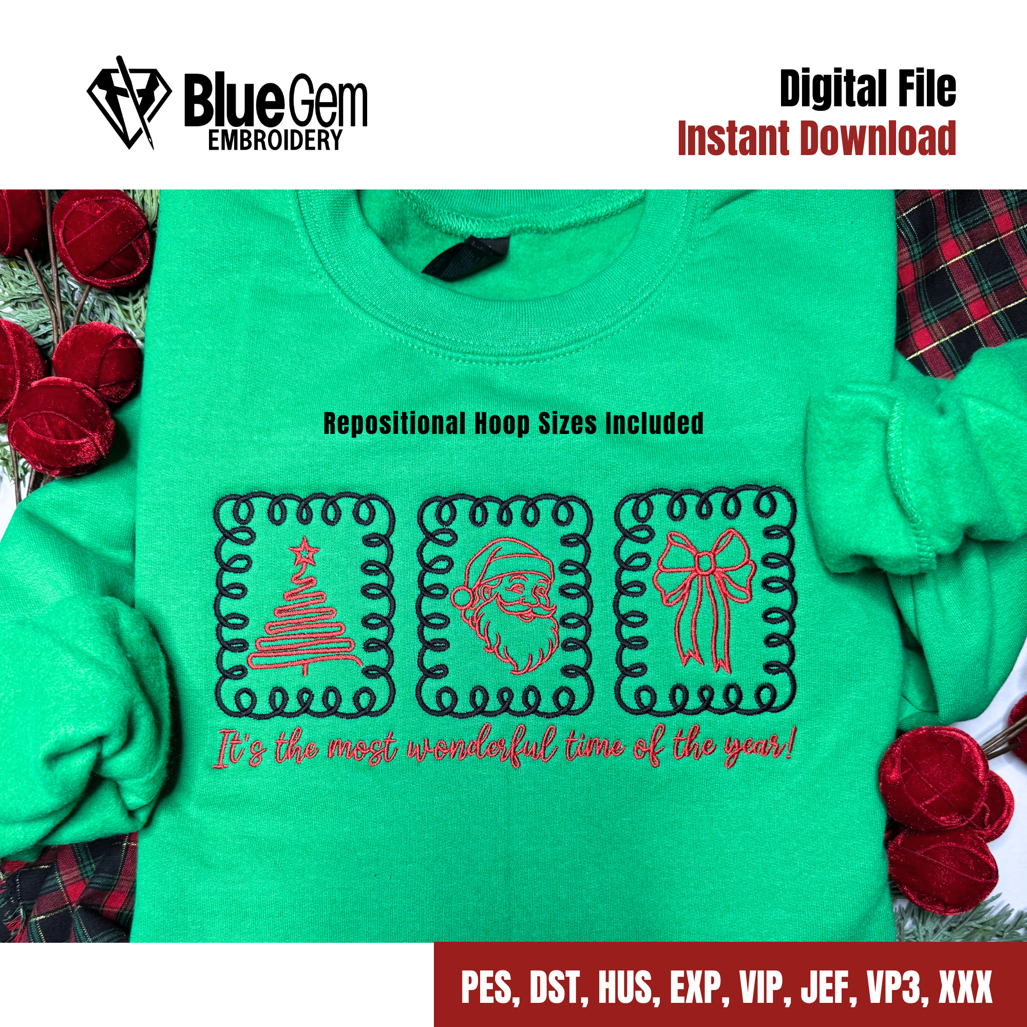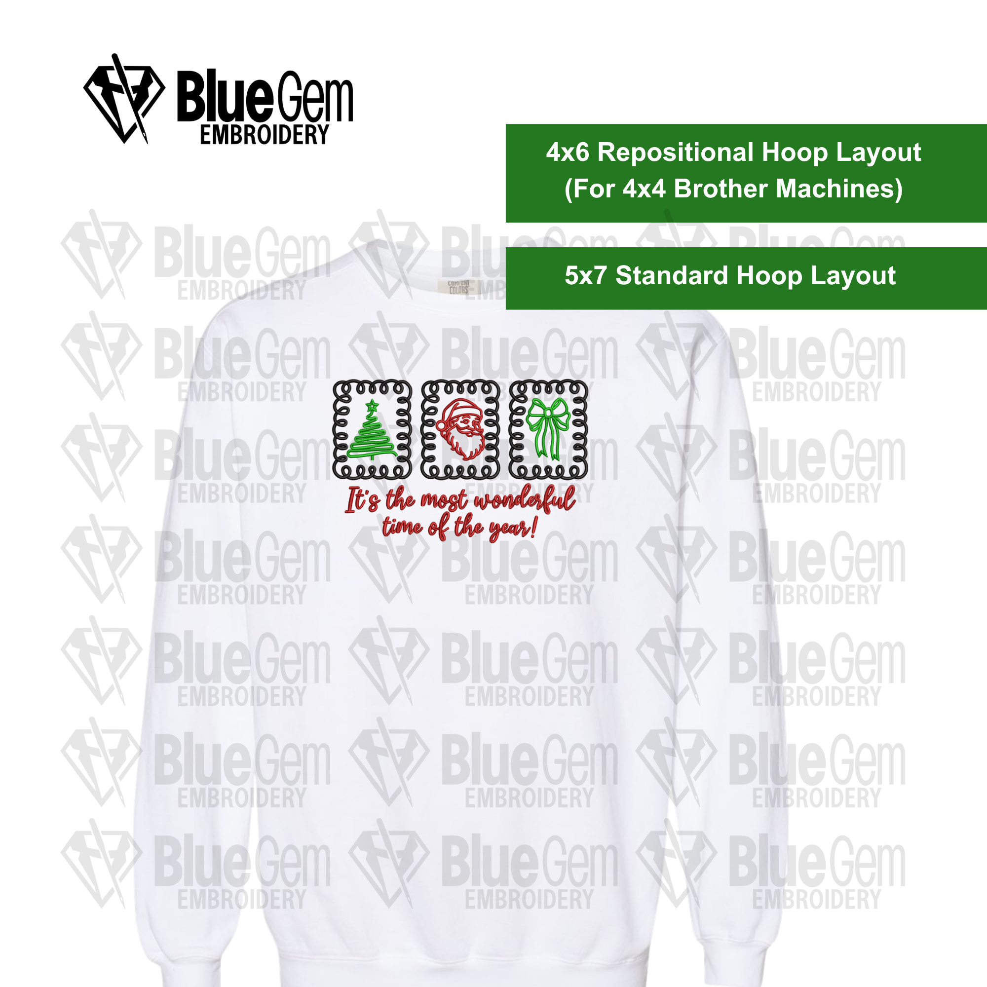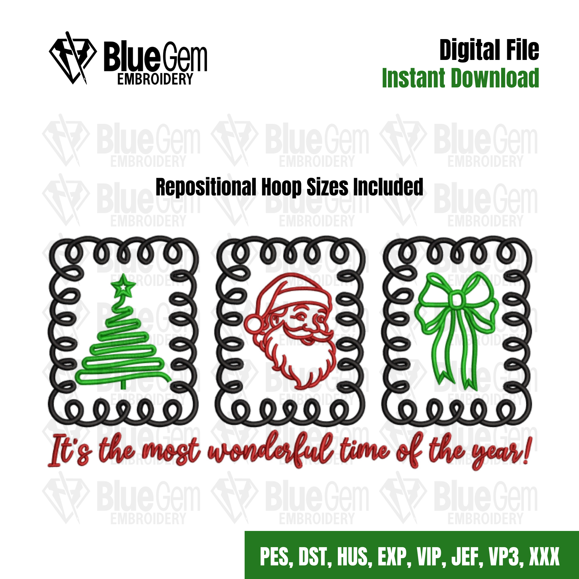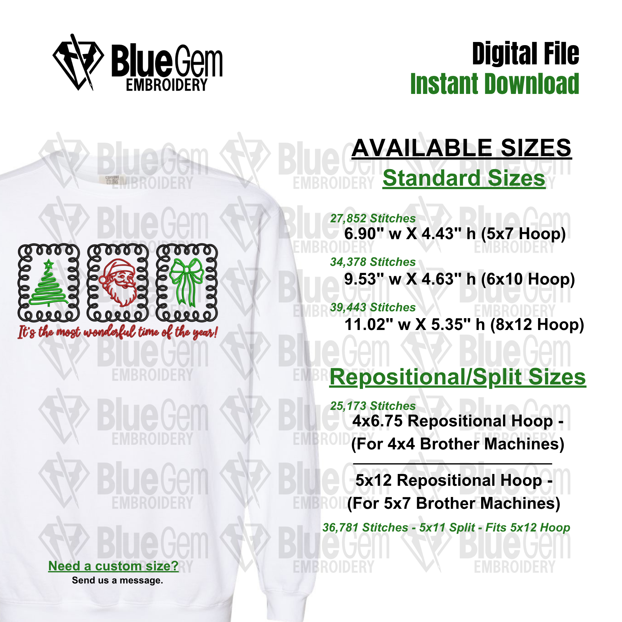 It's the most wonderful time of the year Embroidery Design: Christmas Santa Design - 5 Sizes - Split Sizes Included (Instant Download)
