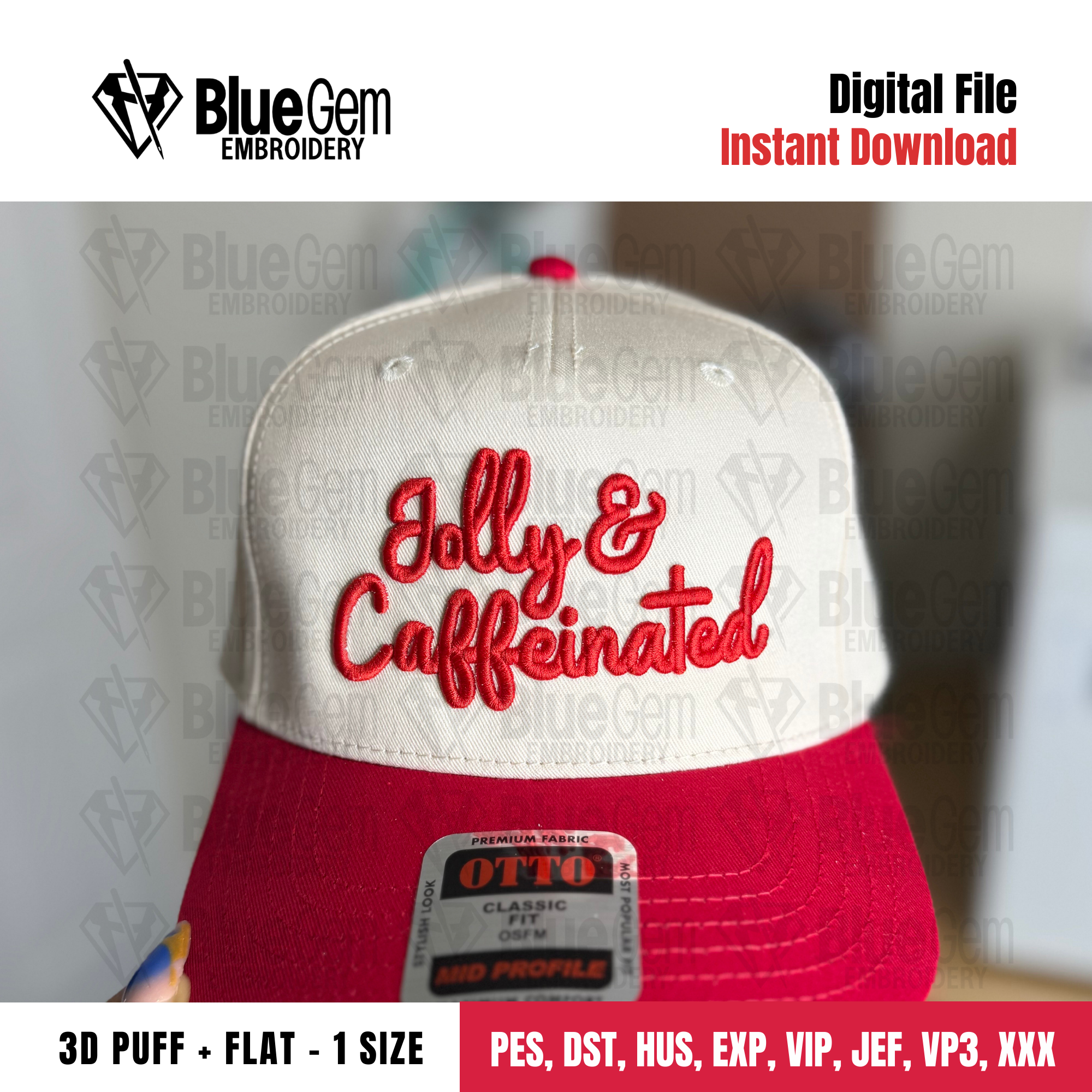 Jolly & Caffeinated Hat Embroidery Design - Christmas Hat Embroidery Design- 1 Size - 3D Puff and Flat - Instant Download