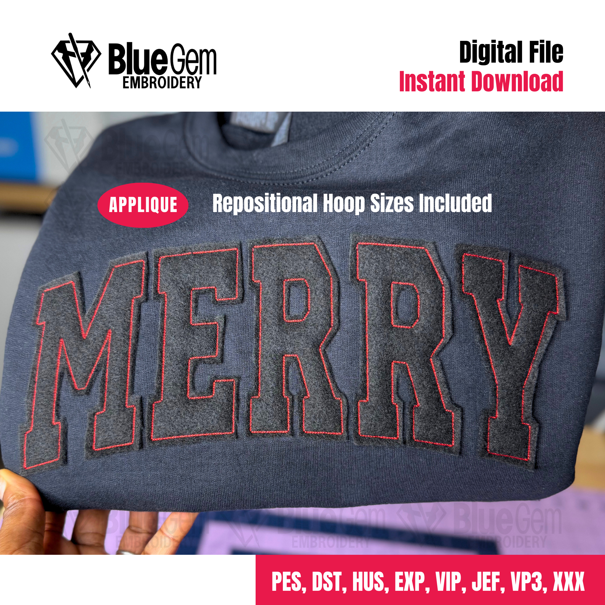 Merry Applique Embroidery Design: Bean Stitch Merry Applique - 5 Sizes (Instant Download)