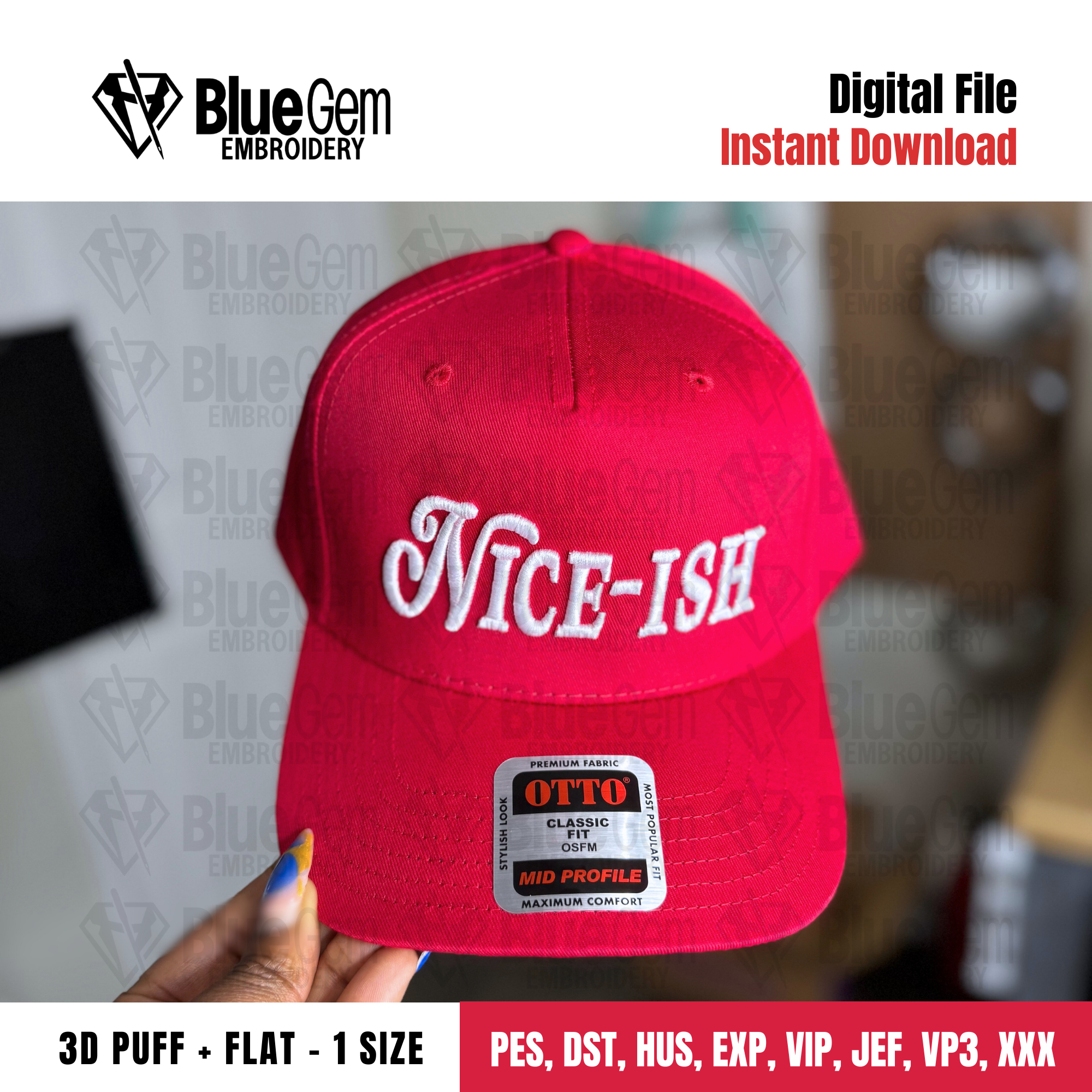 Nice-ish Hat Embroidery Design - 3D Puff & Flat