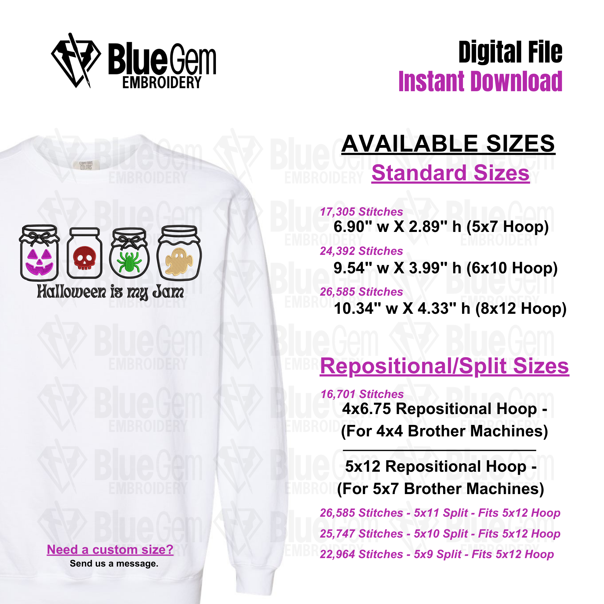 Halloween is my Jam Embroidery Design - Halloween Embroidery Design - Spooky Season - 7 Sizes - Instant Download - Split Sizes Included