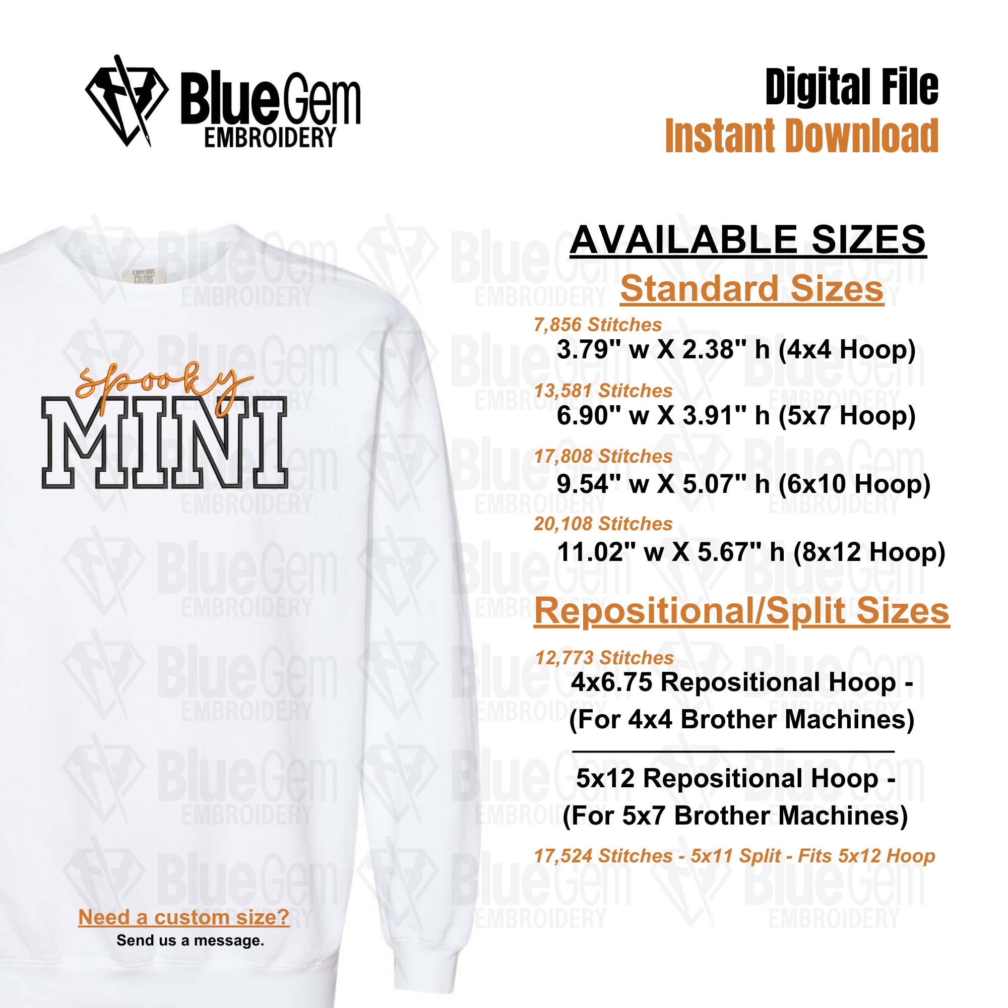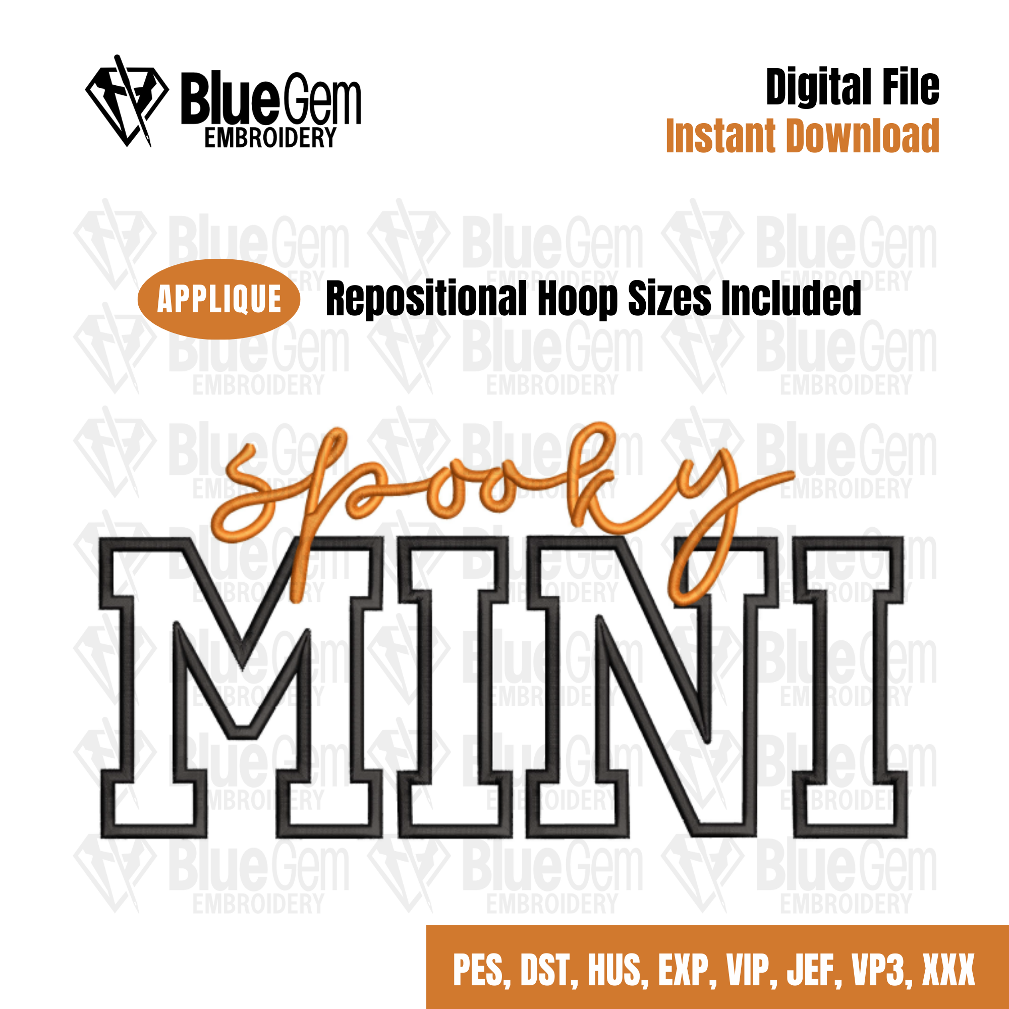 Spooky Mini Applique Embroidery Design - Halloween Embroidery Design- 6 Sizes- Spooky Season- Instant Download - Split Sizes included