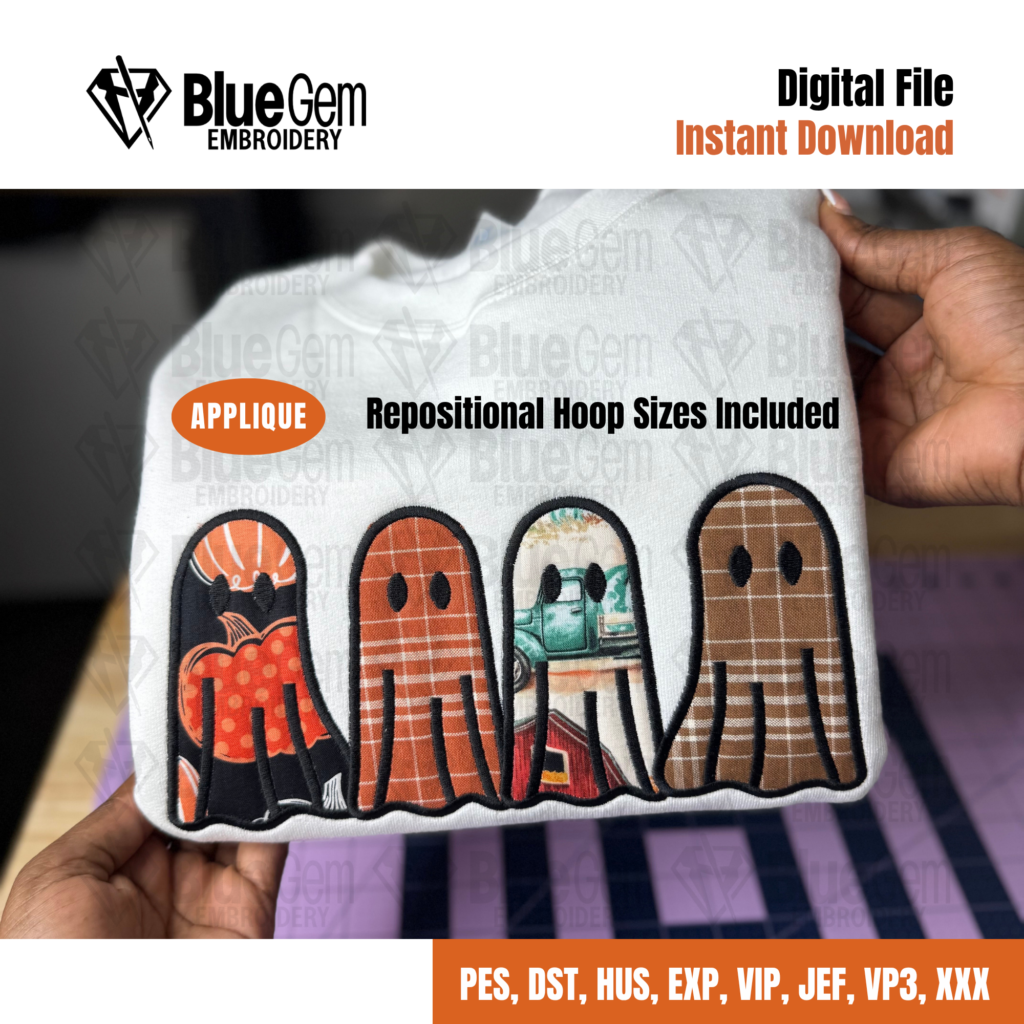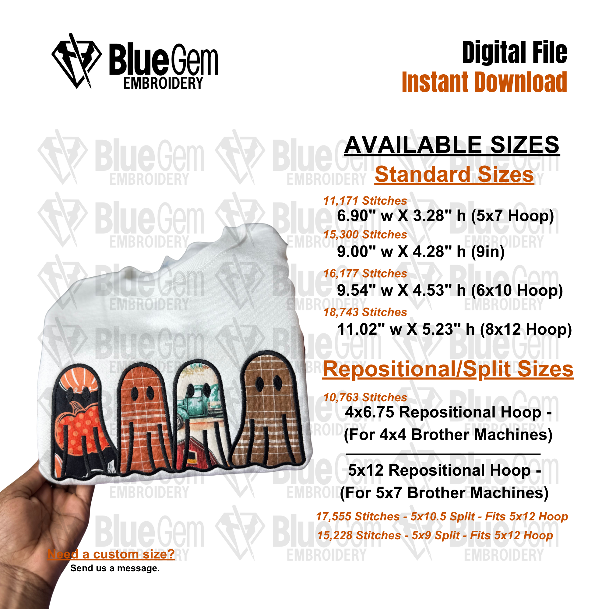 Applique Ghost Embroidery Design - Halloween Embroidery Design - Ghosts Satin Stitch - 7 Sizes - Instant Download - Split Sizes Included