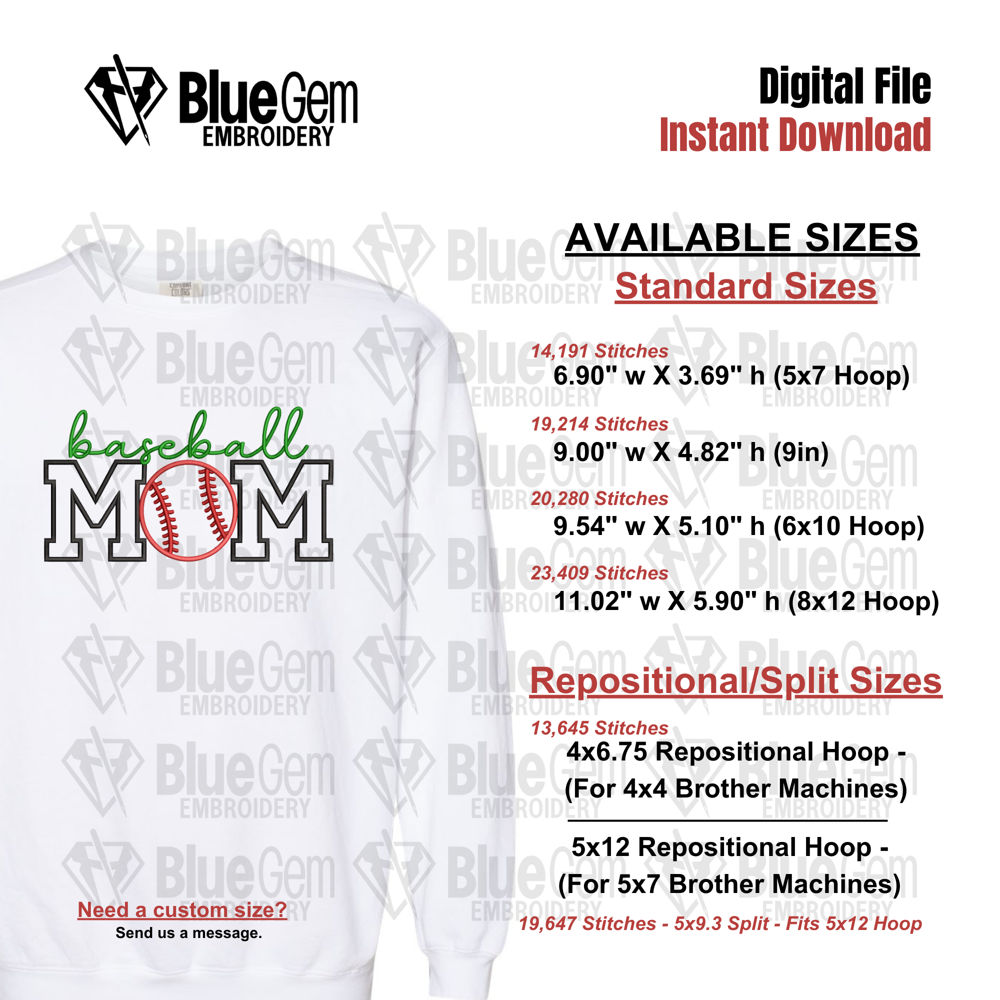 Baseball Mom Applique Embroidery Design: Sports Designs, Split Sizes Included (Digital Download)