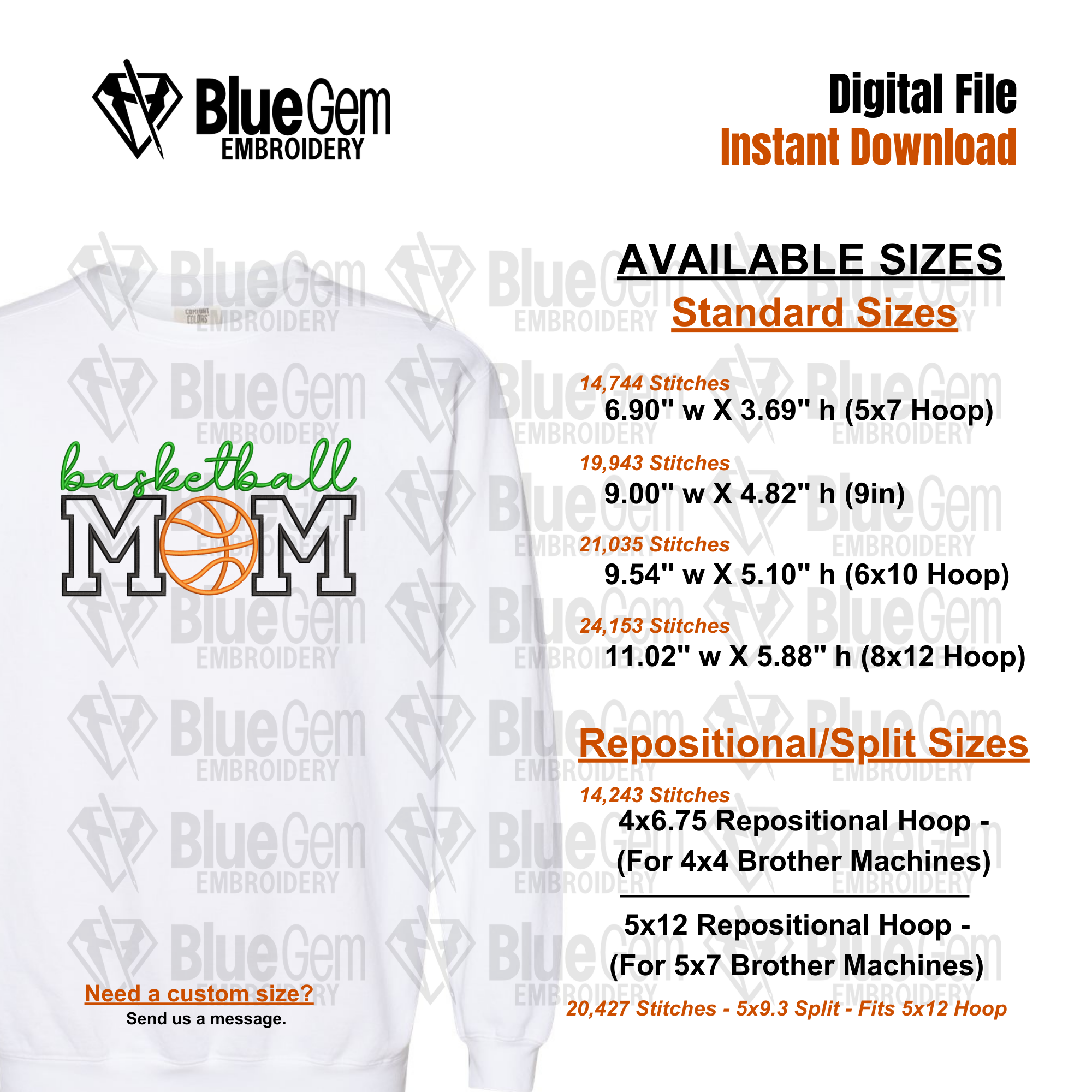 Basketball Mom Applique Embroidery Design: Sports Designs, Split Sizes Included (Digital Download)