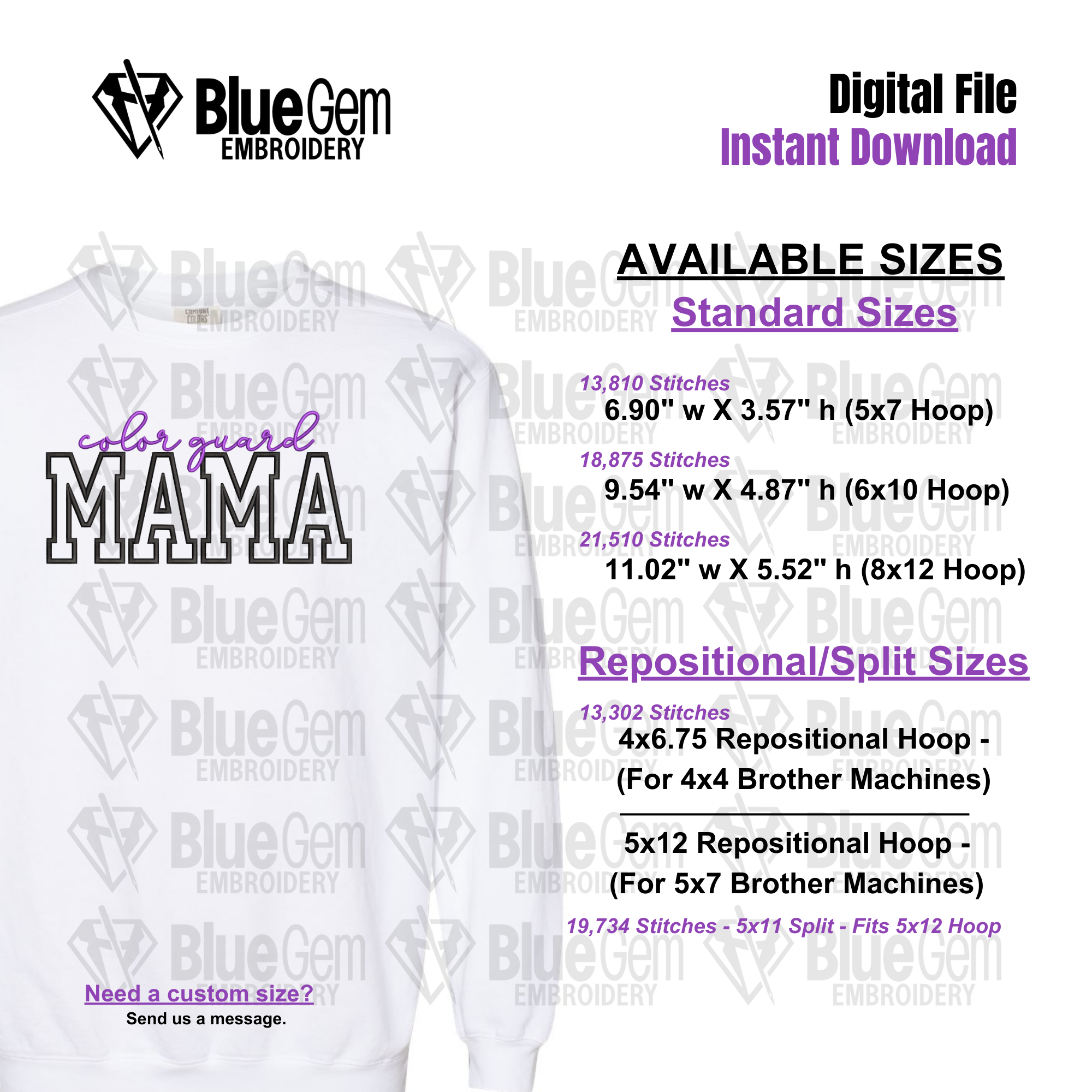 Color Guard Mama Embroidery Design: Color Guard Applique Design, 5 Sizes (Instant Download)