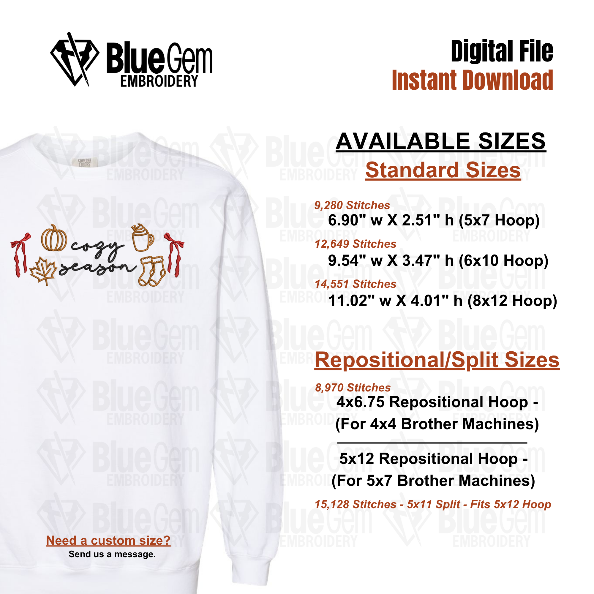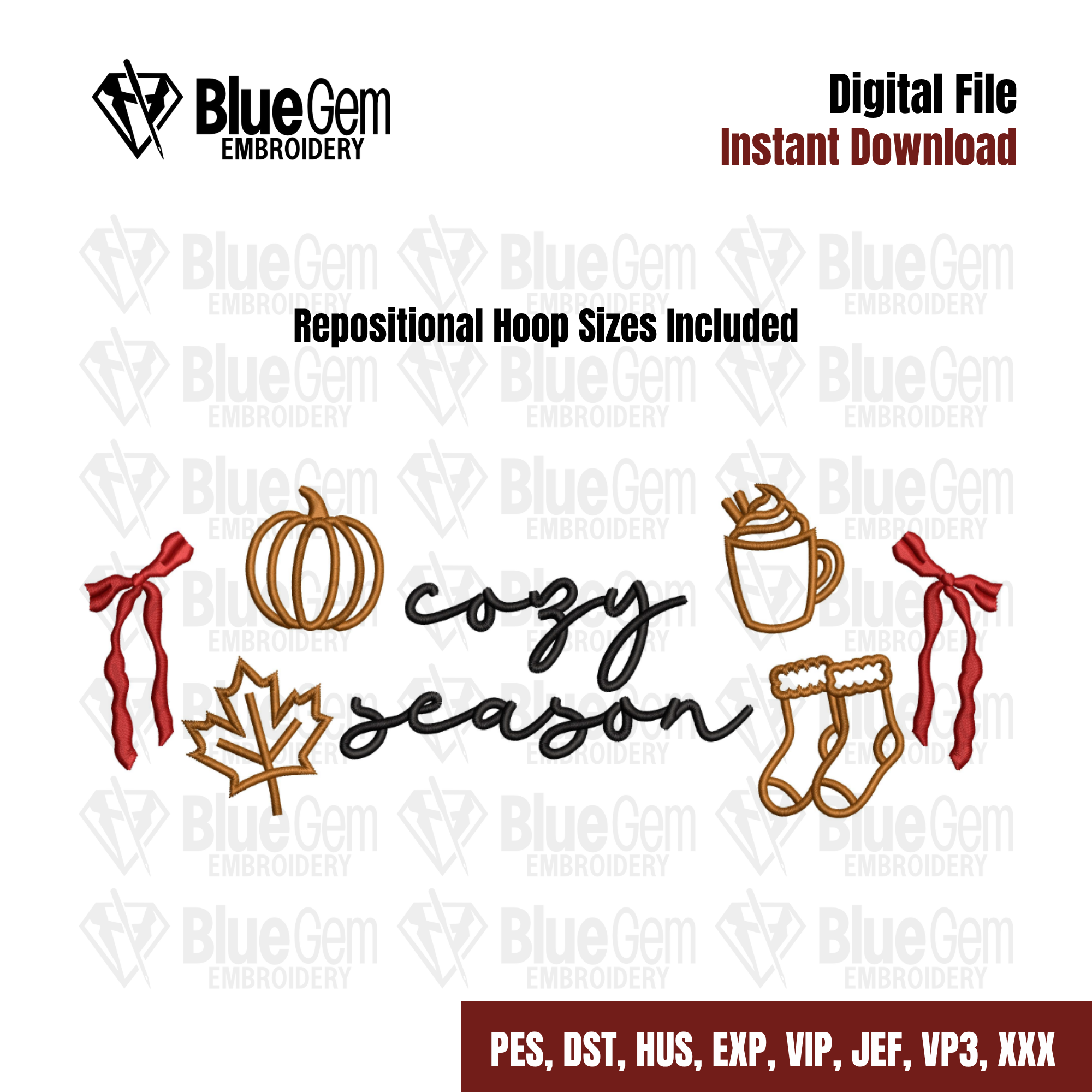 Coquette Cozy Season Embroidery Design - Fall Icons Embroidery Design - Cozy Season - 5 Sizes - Instant Download - Split Sizes Included