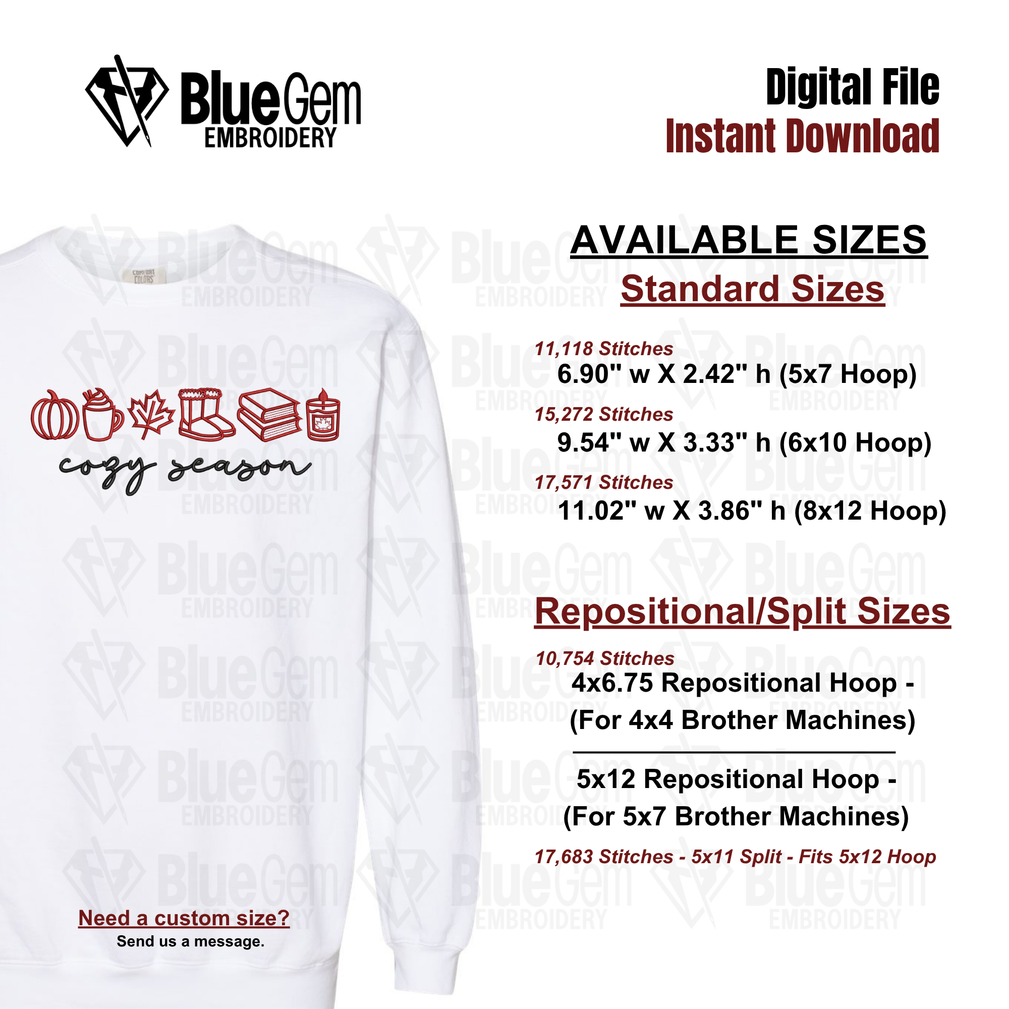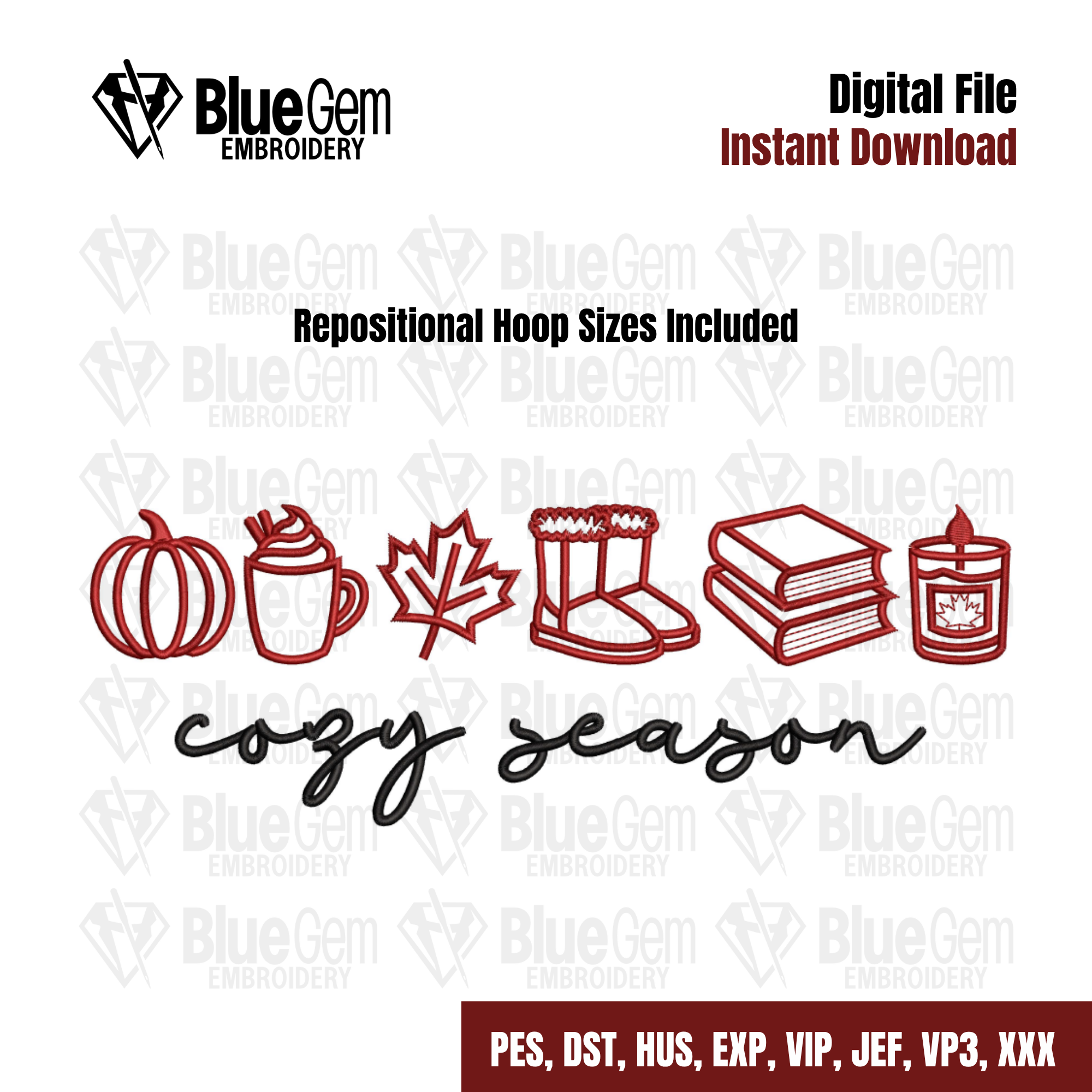 Cozy Season Embroidery Design - Fall Autumn Icons Books Embroidery Design - Cozy Season - 5 Sizes - Instant Download - Split Sizes Included