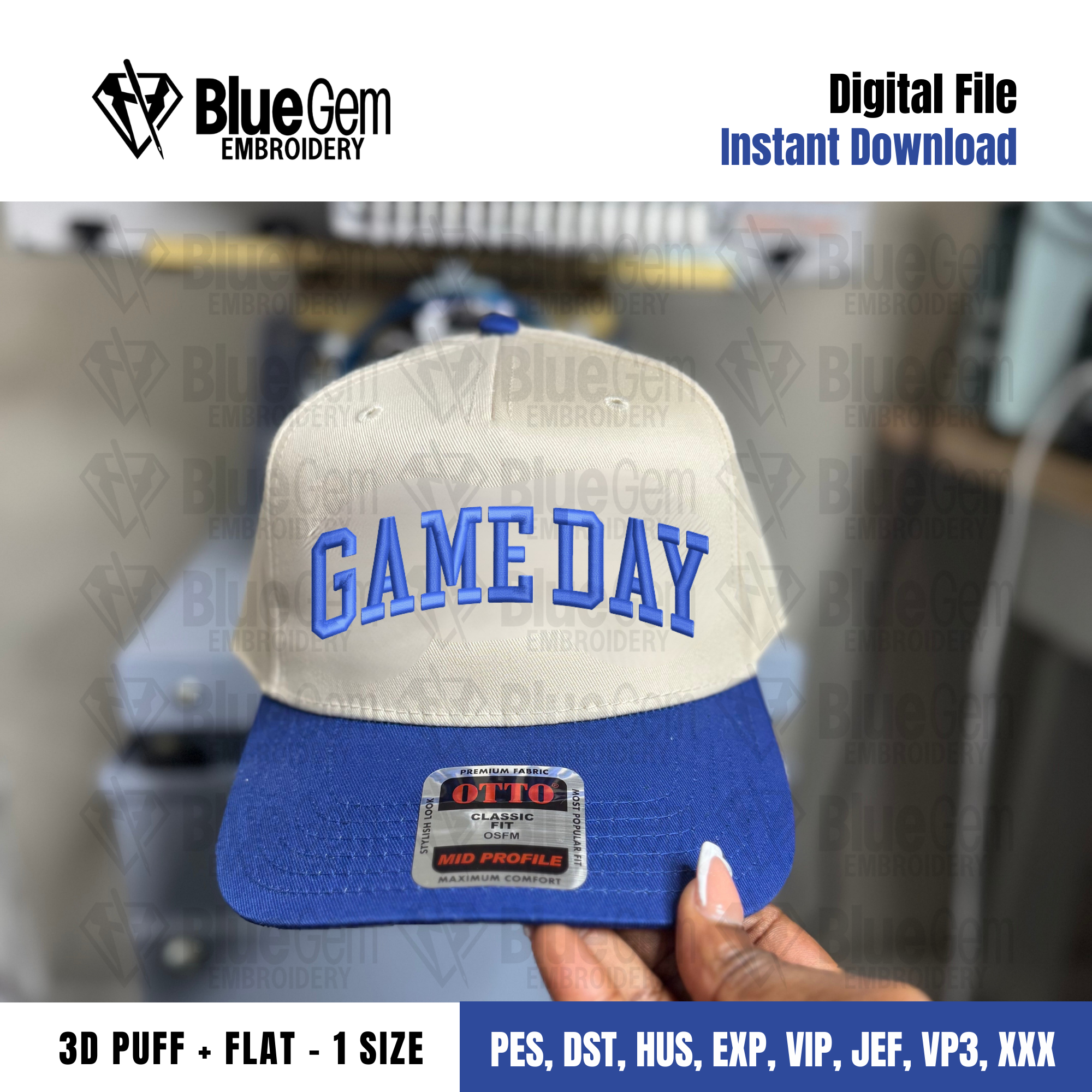 Game Day Hat Embroidery Design - Football Hat Embroidery Design- Football Season - 1 Size - 3D Puff and Flat - Instant Download - Right Side