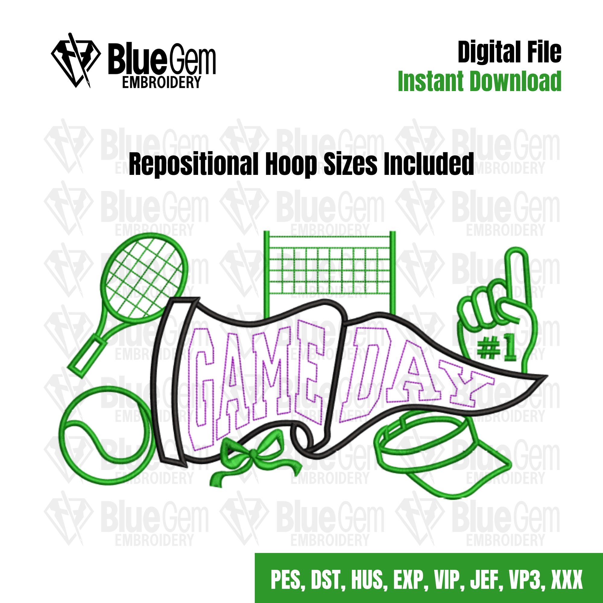 Game Day Pennant Flag Embroidery Design - Tennis Embroidery Design- Tennis - Pennant - 6 Sizes - Instant Download - Split Sizes Included
