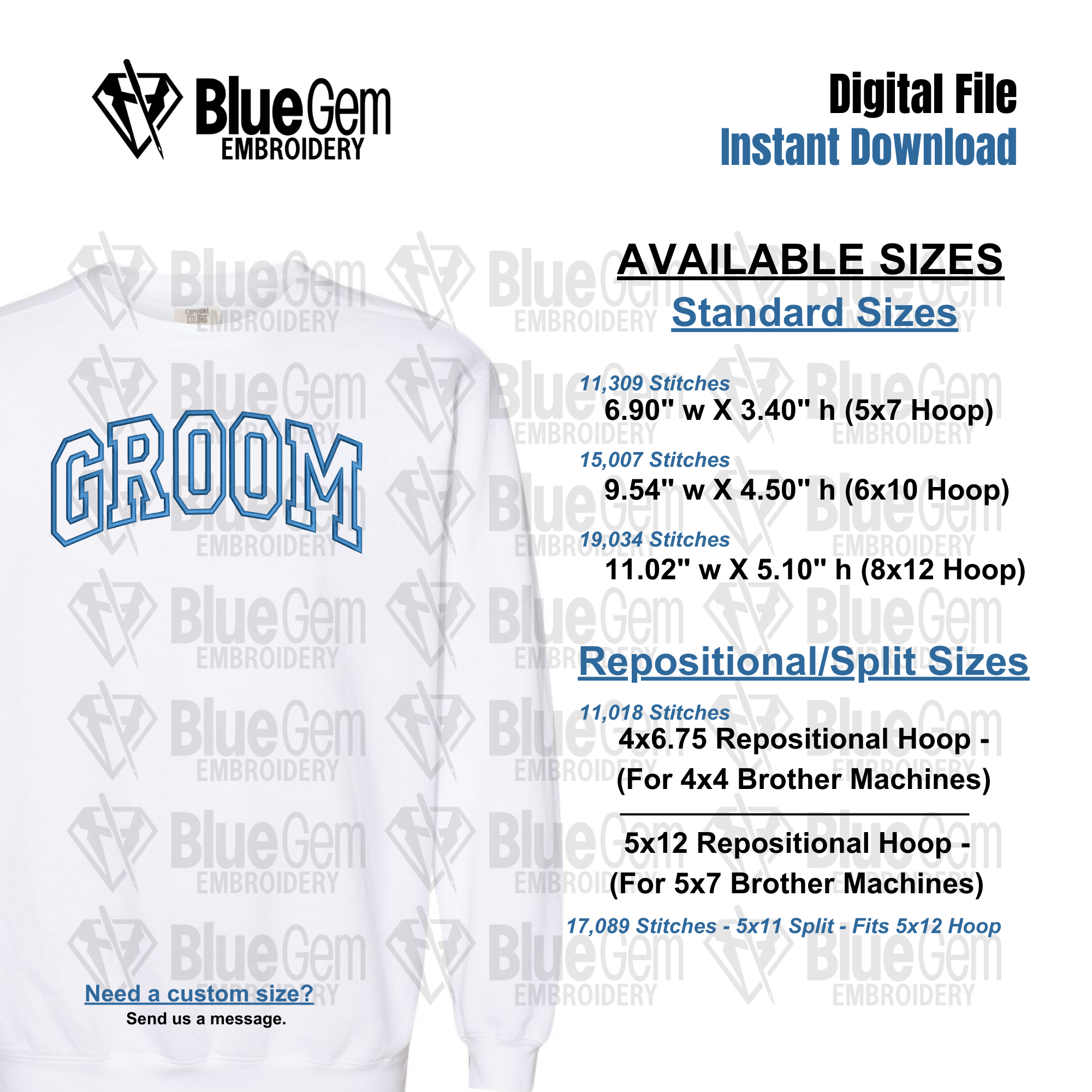 Groom Applique Embroidery Design - Groom Embroidery Design- 5 Sizes - 8 Formats - Instant Download - Split Sizes Included