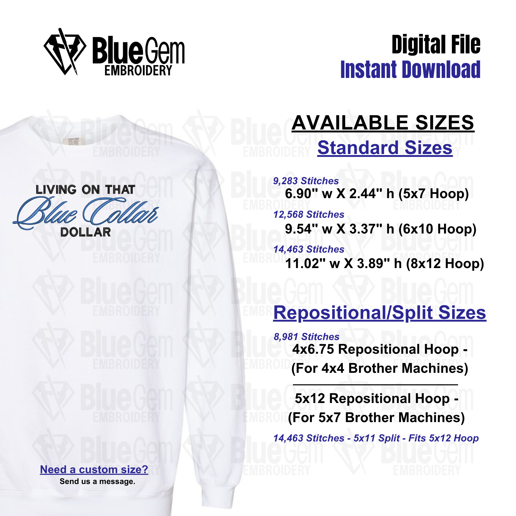 Living on that Blue Collar Dollar Embroidery Design