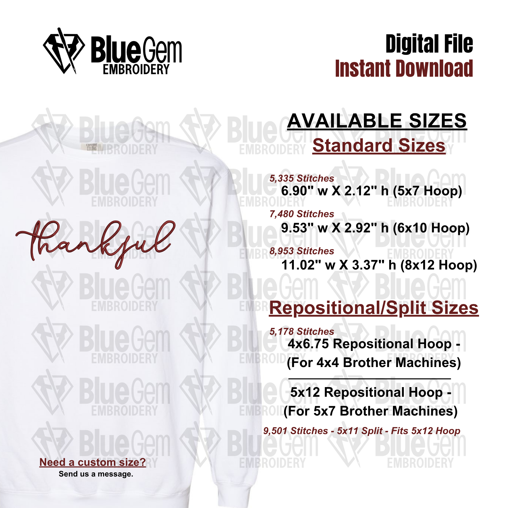 Thankful Embroidery Design: Thanksgiving Design - Split Sizes Included (Instant Download)