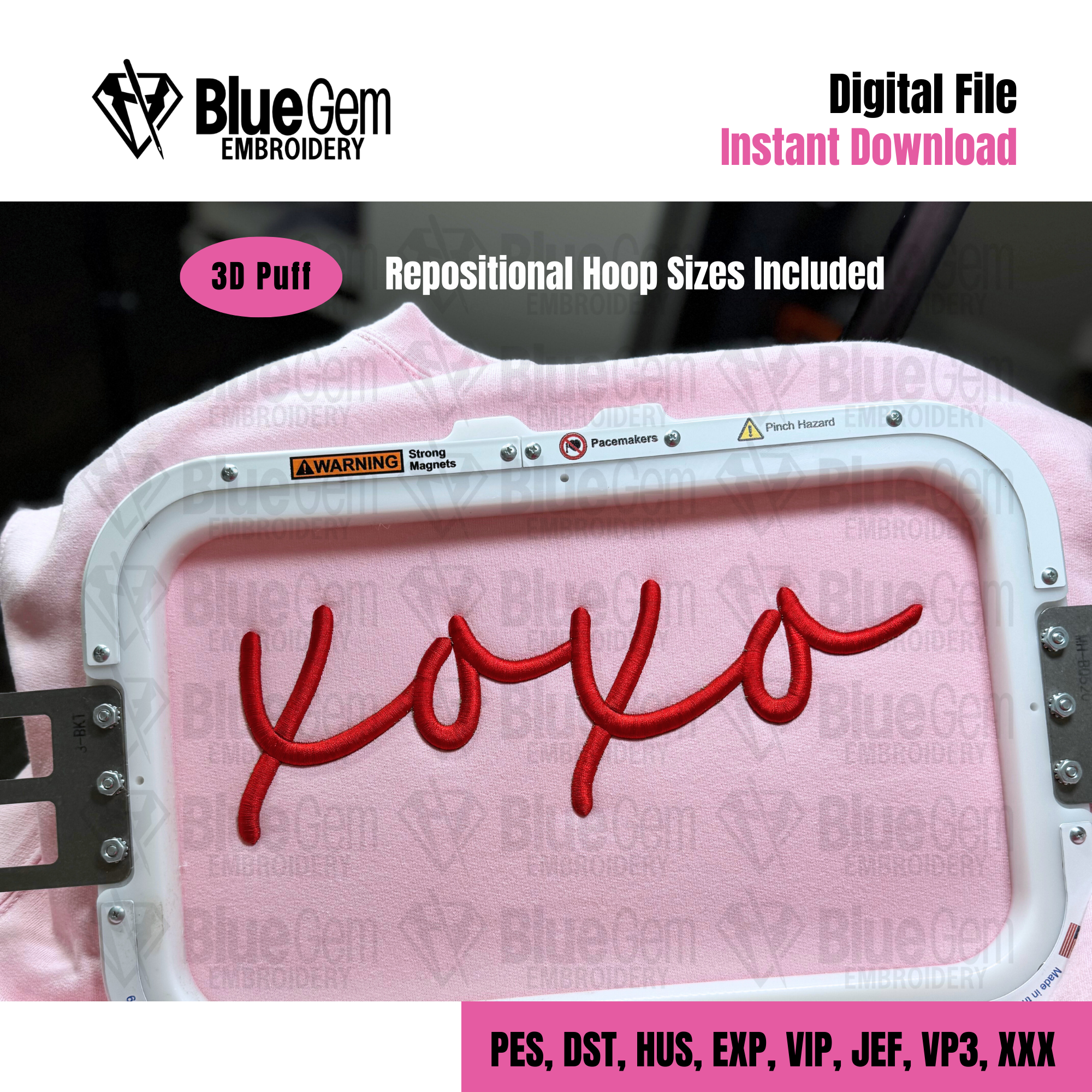 XOXO 3D Puff Embroidery Design: Valentines Day Design, Split Sizes Included (Instant Download)