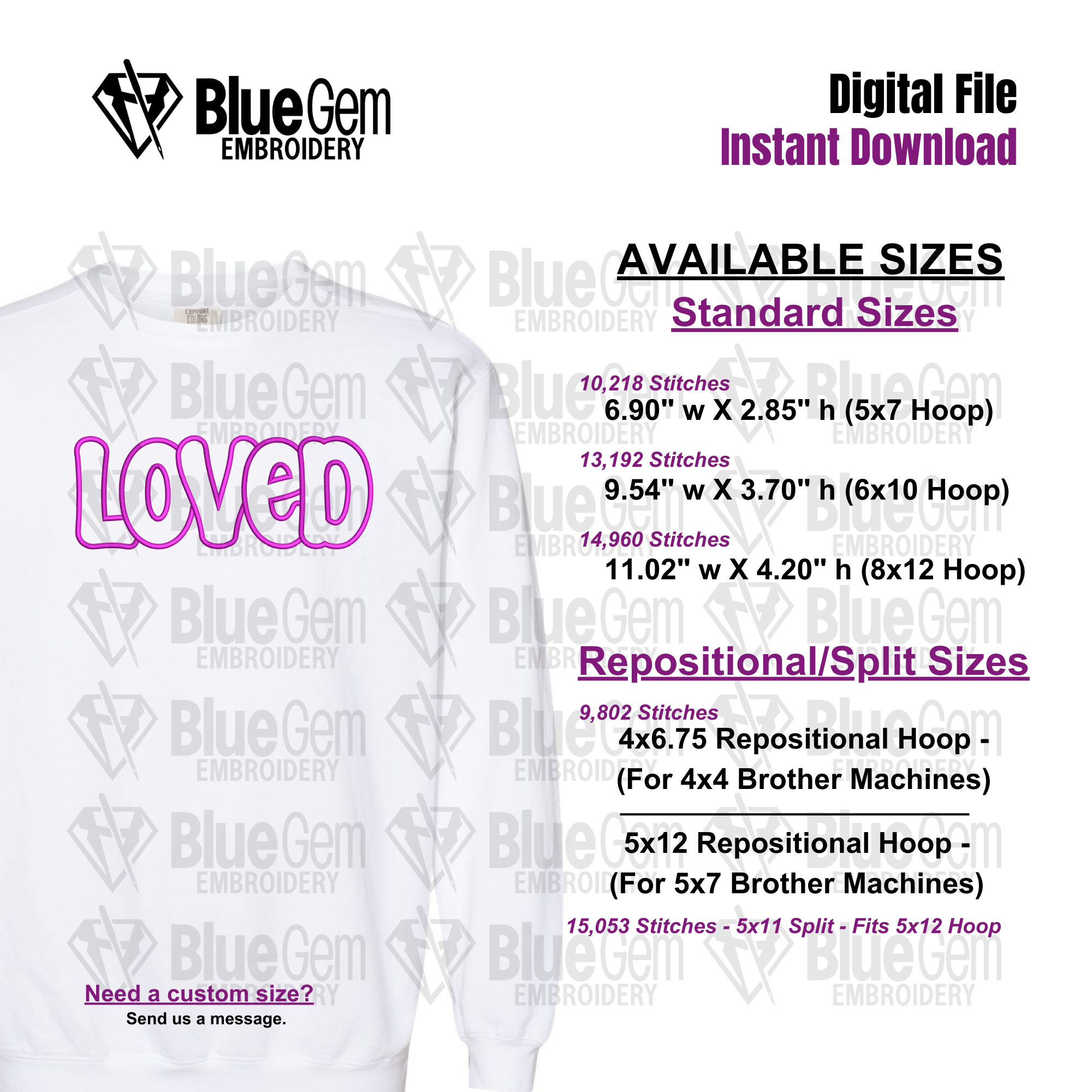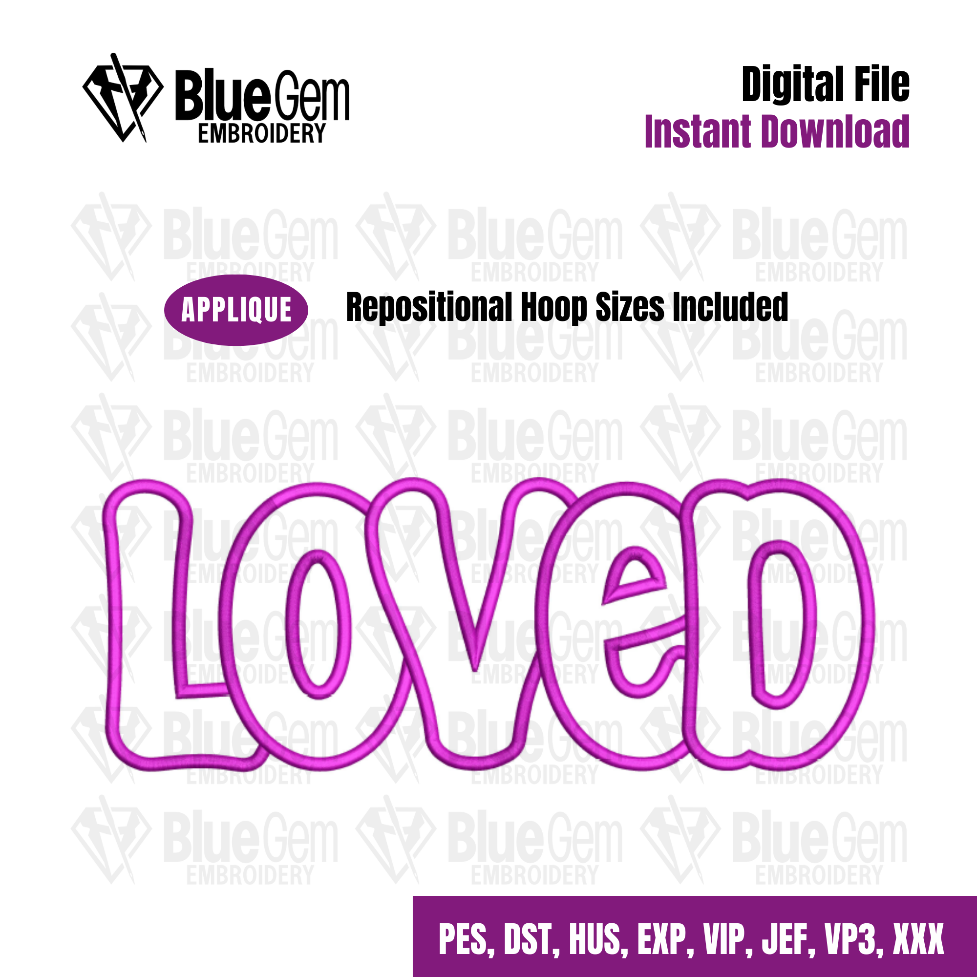 Loved Applique Embroidery Design - Valentines Day Design (Instant Download)